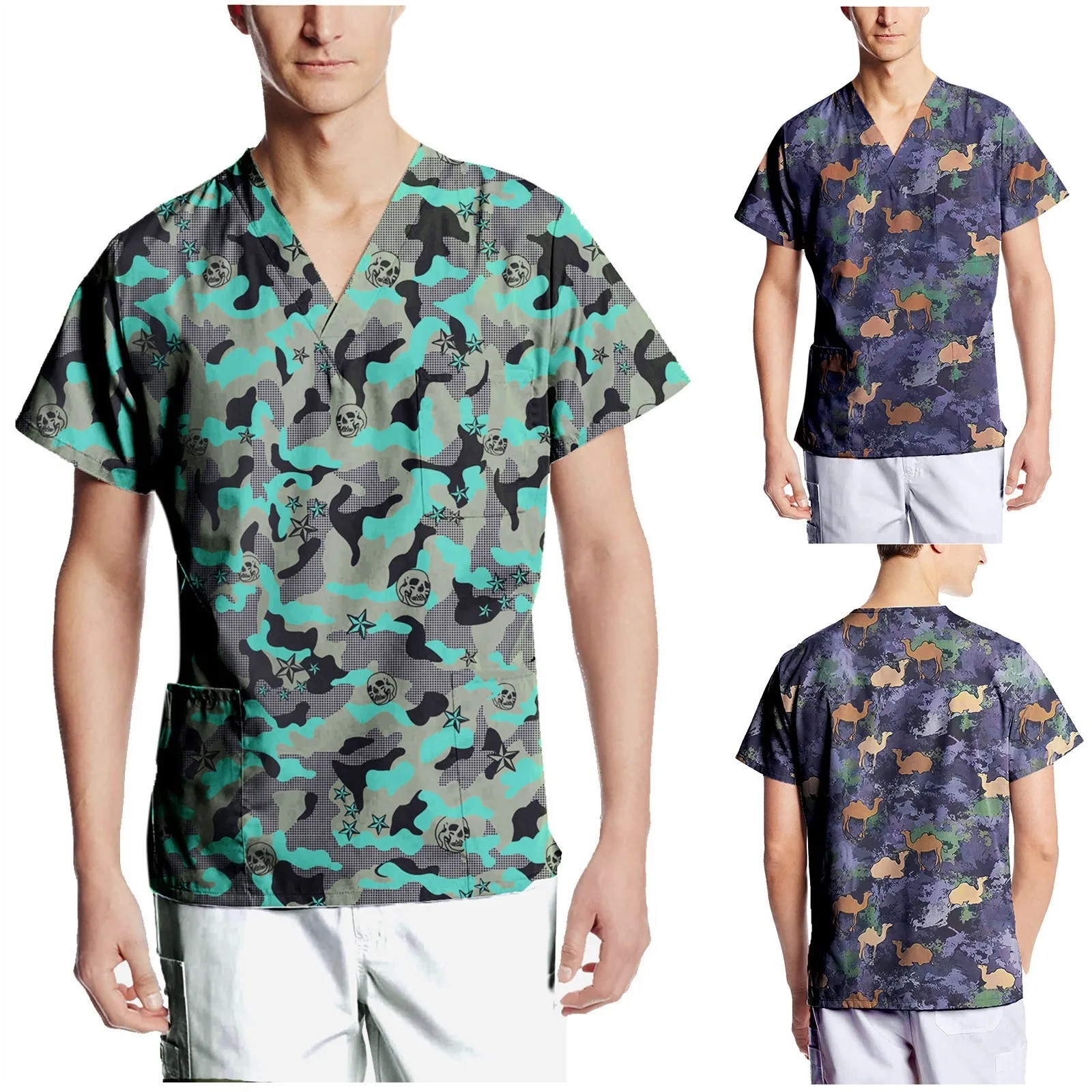 Мужская Рабочая форма для кормления, однотонные Топы с коротким рукавом и V-образным вырезом, футболки с карманами, Повседневная Блузка, красивая рабочая одежда для врачей, Топ