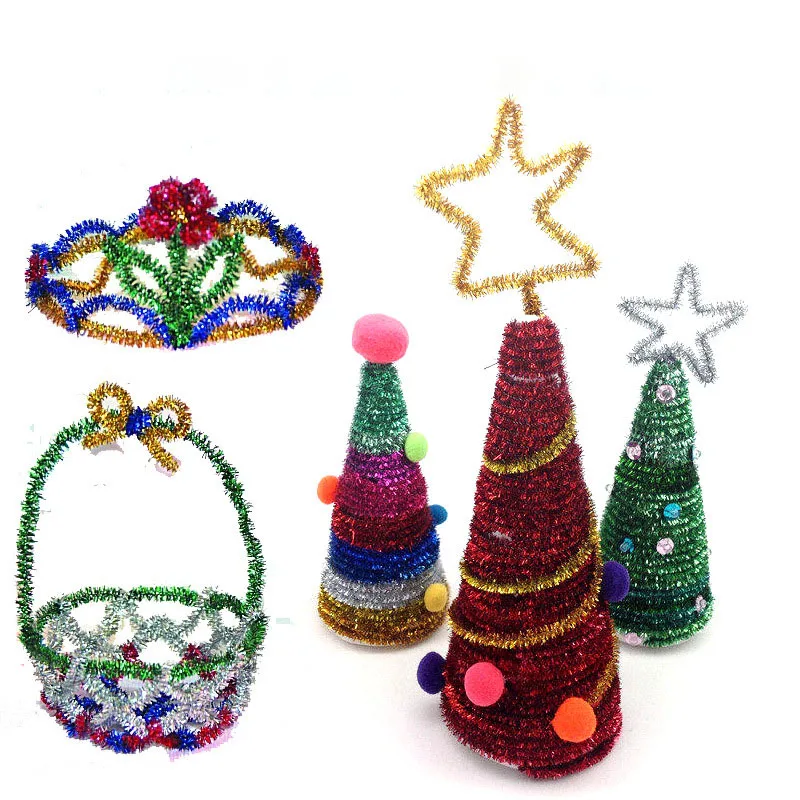 98 шт. блестящие искусственные плюшевые мишуры, проводные палочки, детские игрушки ручной работы, Детские творческие материалы ручной работы сделай сам