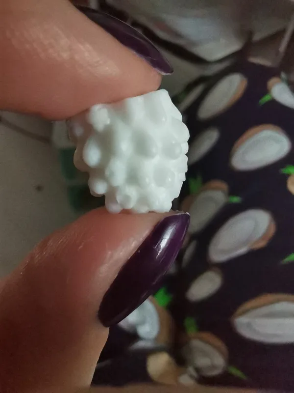 Это не черника, а какое то мини яблоко получается, вообще у меня была задача из формы для черники получить зелёный горошек, но тут получились мини яблочки, и цвет подходящий. Что черника, что малина у этого продавца ничего общего с настоящими формами ягод не имеет. За такую цену грех жаловаться, как говорится, но я пожалуюсь