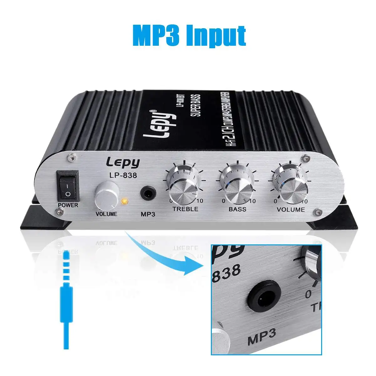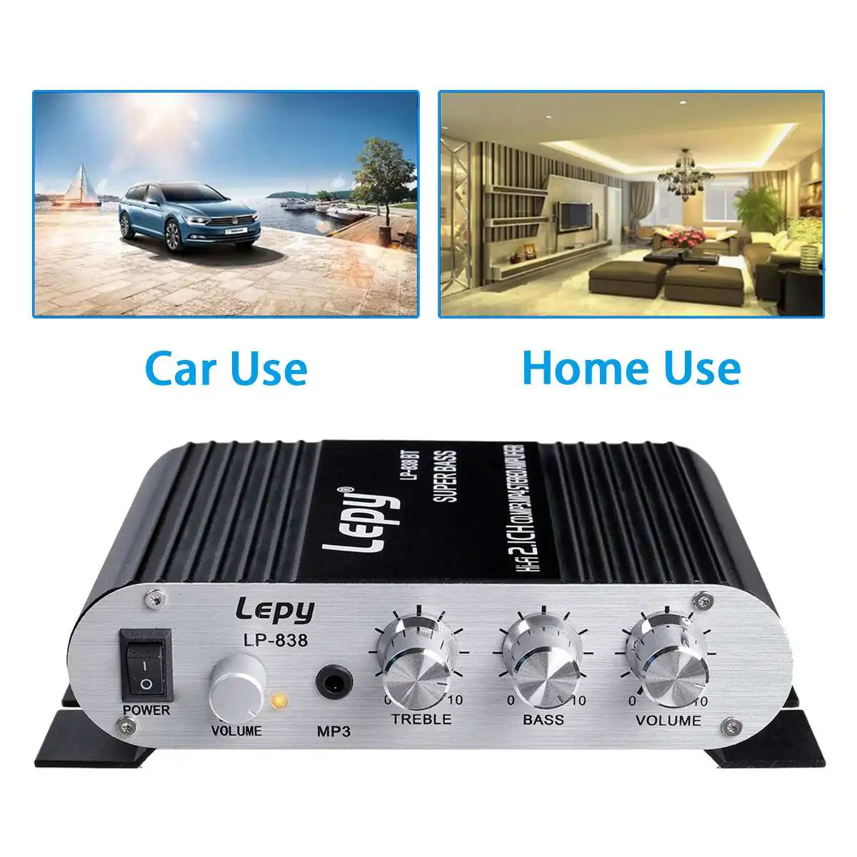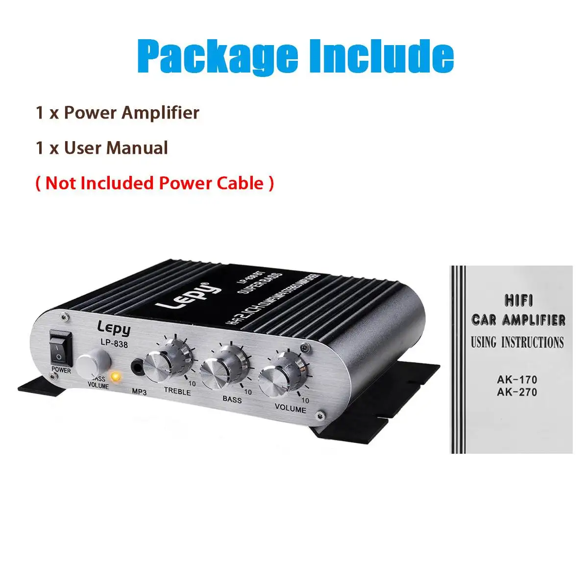Особенности:-Супер бас Hi-Fi стерео bluetooth 2,1 канальный усилитель.-- Легкий алюминиевый корпус, поверхность машины, сделанная методом окисления волочения проволоки.-- Красный кольцевой индуктор + фильтр большой емкости.-С разъемом для подключения MP3, MP4, iPod или CD-плеера.-С высокими частотами, басами и регулятором громкости, очень прост в использовании.-- Низкое искажение обеспечивает более четкий, сильный и мощный звук.-- Отрегулируйте высокую и низкую частоту отдельно, позвольте вам найти свой любимый частотный диапазон.-Отлично подходит для вашего автомобиля или дома.