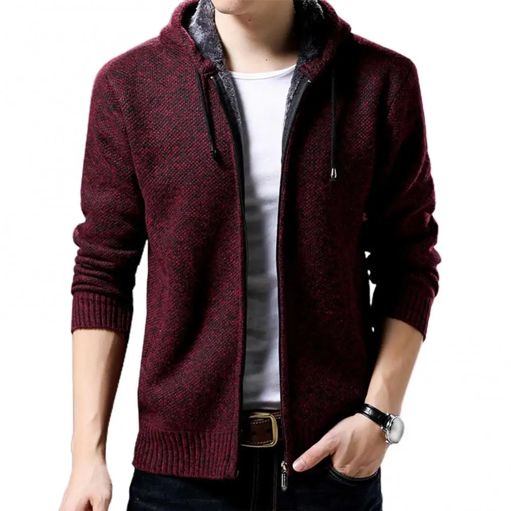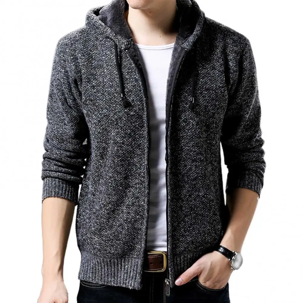 2021 Новая модная мужская осенне-зимняя куртка с длинным рукавом, плюшевая подкладка, карманы на молнии, вязаное пальто с капюшоном