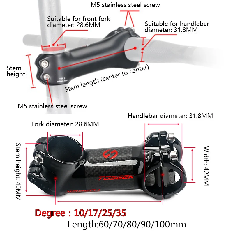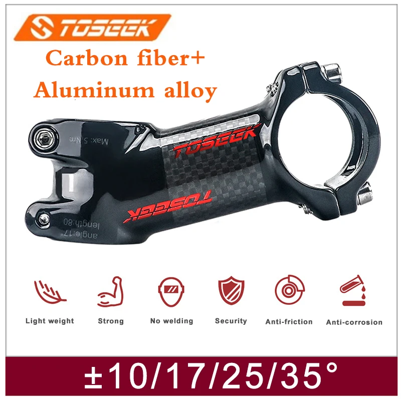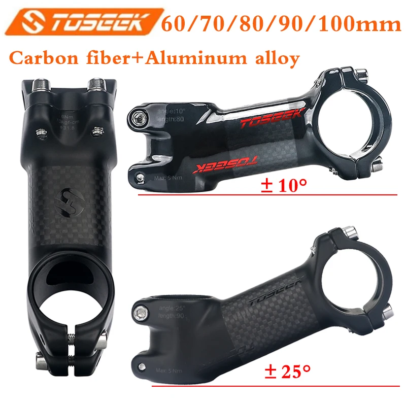 Toseek велосипедный стержень 1025 градусов дорожный руль для горного велосипеда углеродный алюминиевый руль стебли 60708090100 мм MTB Силовая часть