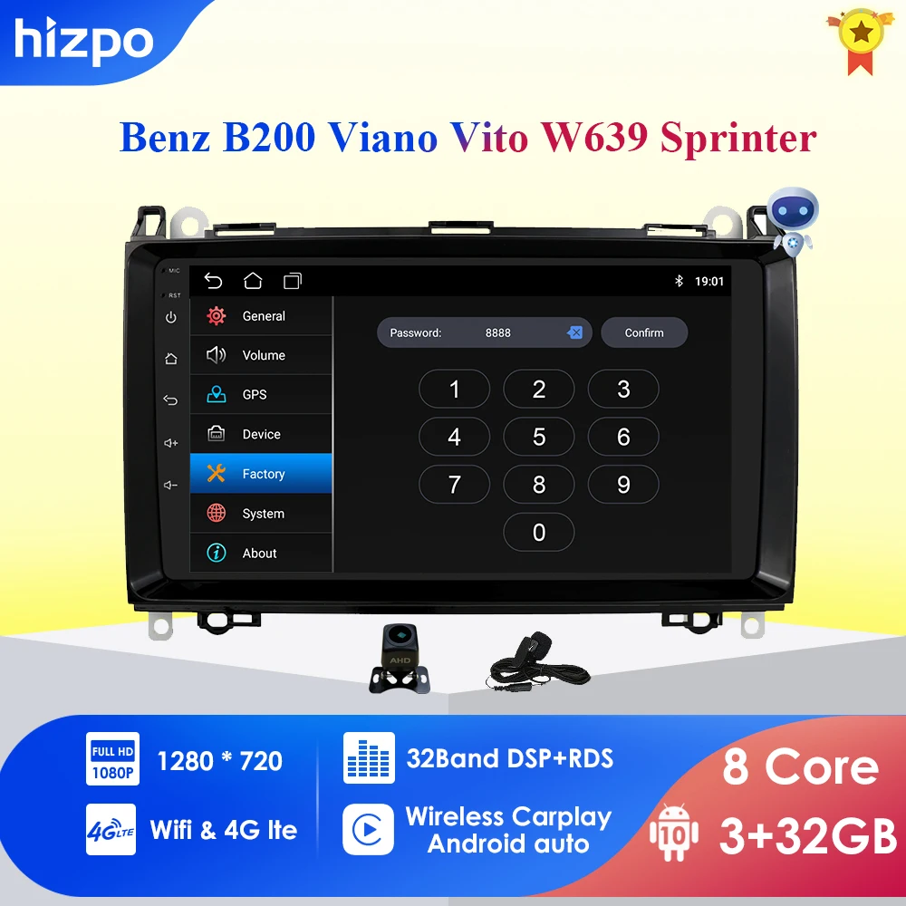 Автомобильное радио 3 ГБ + 32 ГБ AI Android 10 2Din для Mercedes Benz B200 Sprinter W906 W639 AB Class W169 W245 Viano Vito Авторадио GPS Navi
