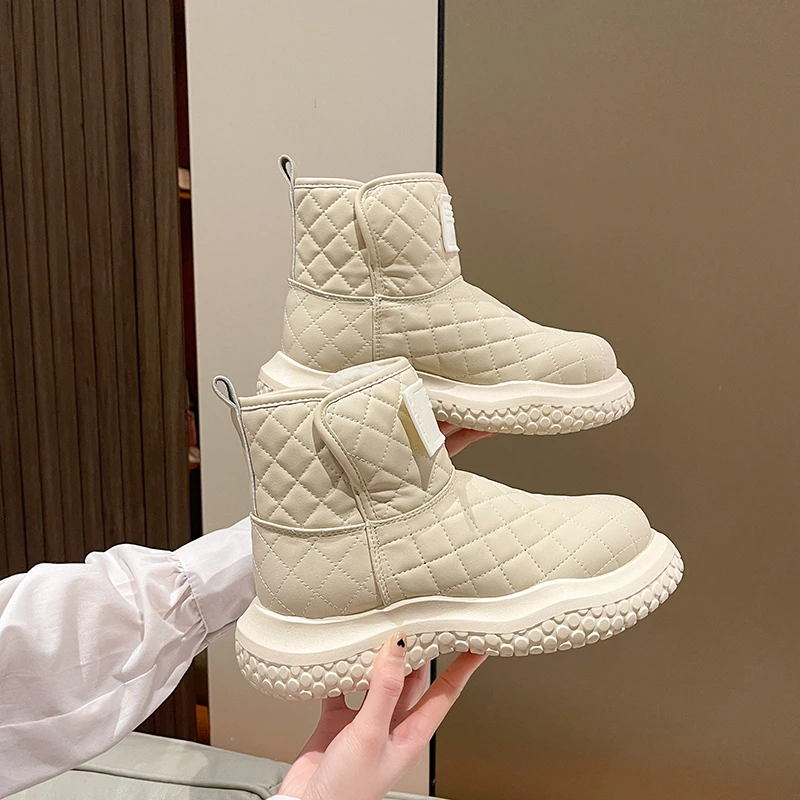 Модные белые женские сапоги из натуральной кожи, зимние плюшевые теплые сапоги из хлопка, новые удобные повседневные сапоги на толстой подошве