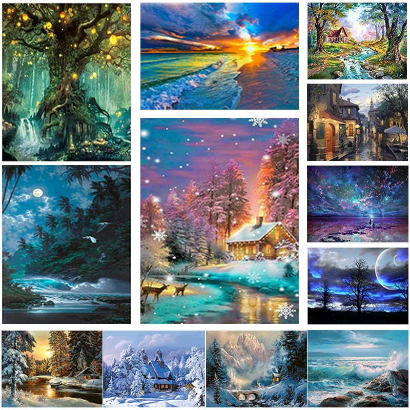 Алмазная живопись, пейзаж 5D, полная круглая мозаика, алмазная вышивка, пейзаж, живопись, домашний декор, сделай сам, подарок ручной работы