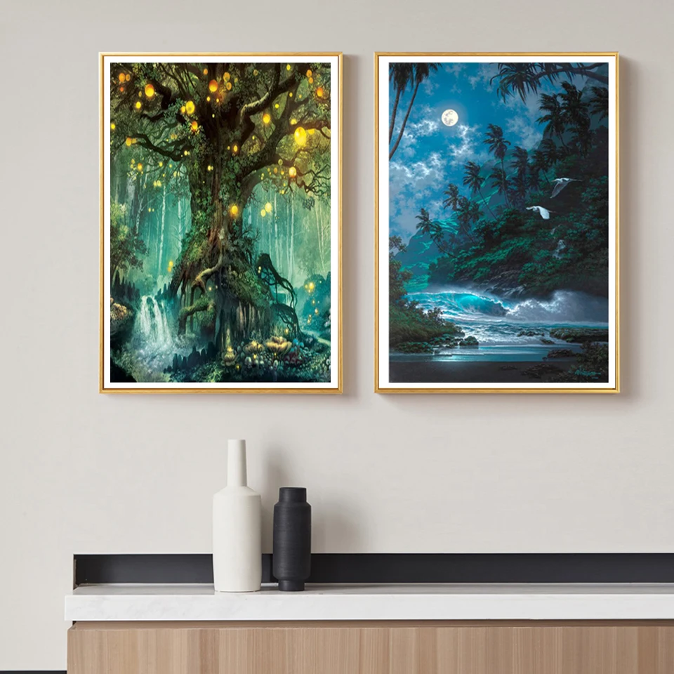 Полноразмерная Алмазная 5d-картина с Луной, пейзаж, мозаика, вышивк...