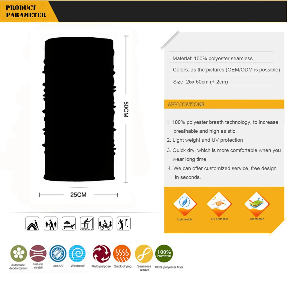 Пользовательские шеи гофрированный труба Buff Бандана Повязка Спорт...