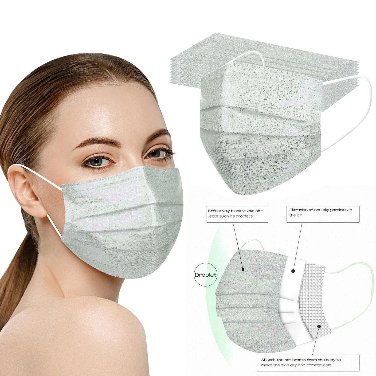 Дышащий материал и Блестящий Узор, что делает его полезным и модным. Признак 4 слоя из нетканого материала, дизайн, обеспечивает некоторые меры защиты от пыли, автомобильный отходящий газ, пыльцу и т. д.