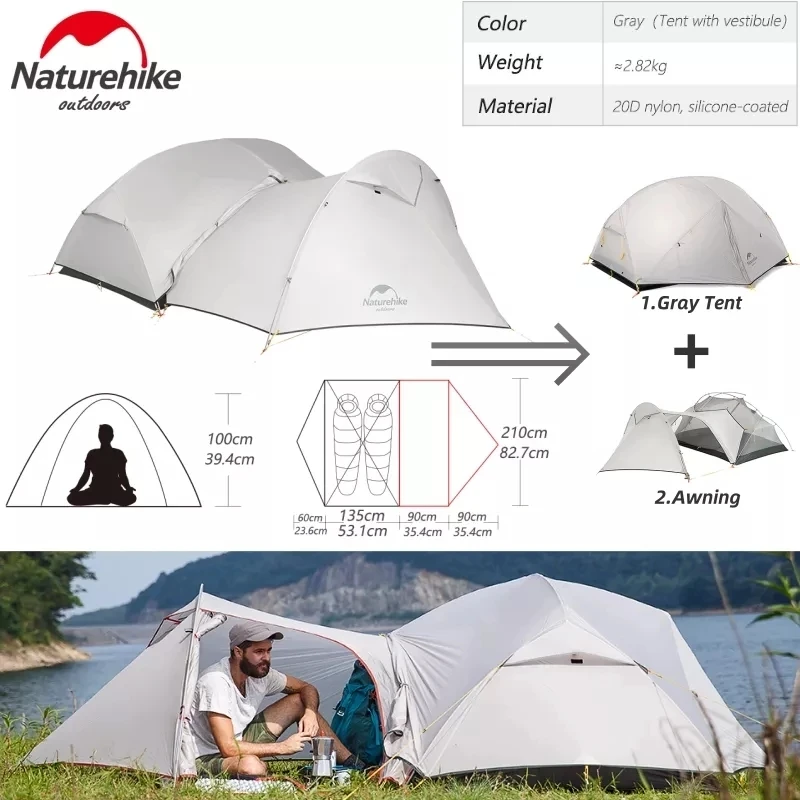 Палатка Naturehike Mongar туристическая на 2 человек, Ультралегкая ...