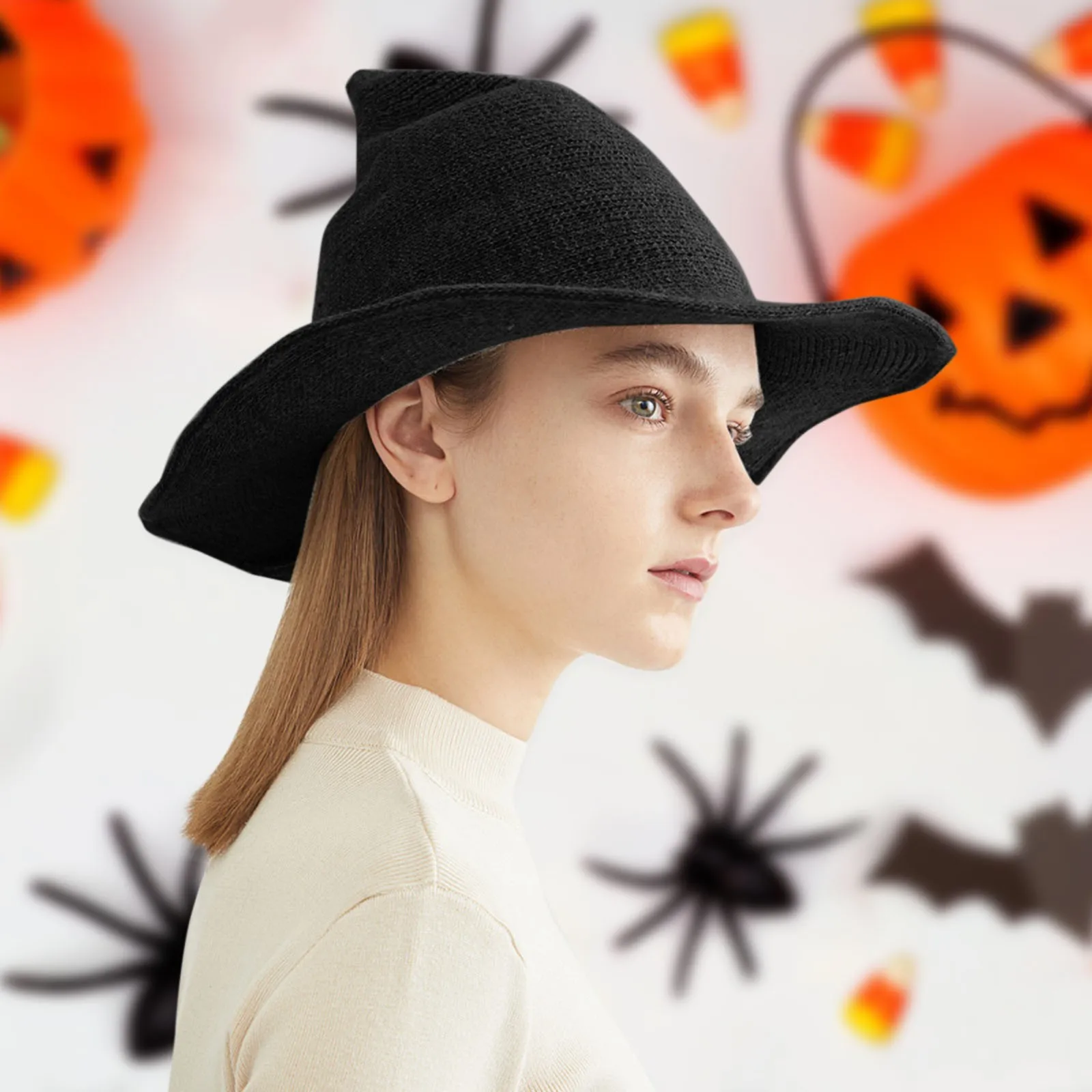 Женская шапка на Хэллоуин, шляпа ведьмы, шапка ведьмы, вязаная шапка ведьмы