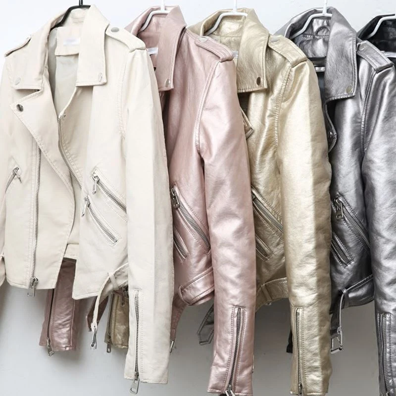Женская короткая куртка из ПУ кожи, с отложным воротником и молнией