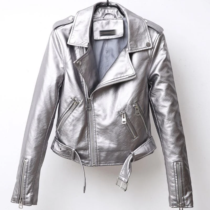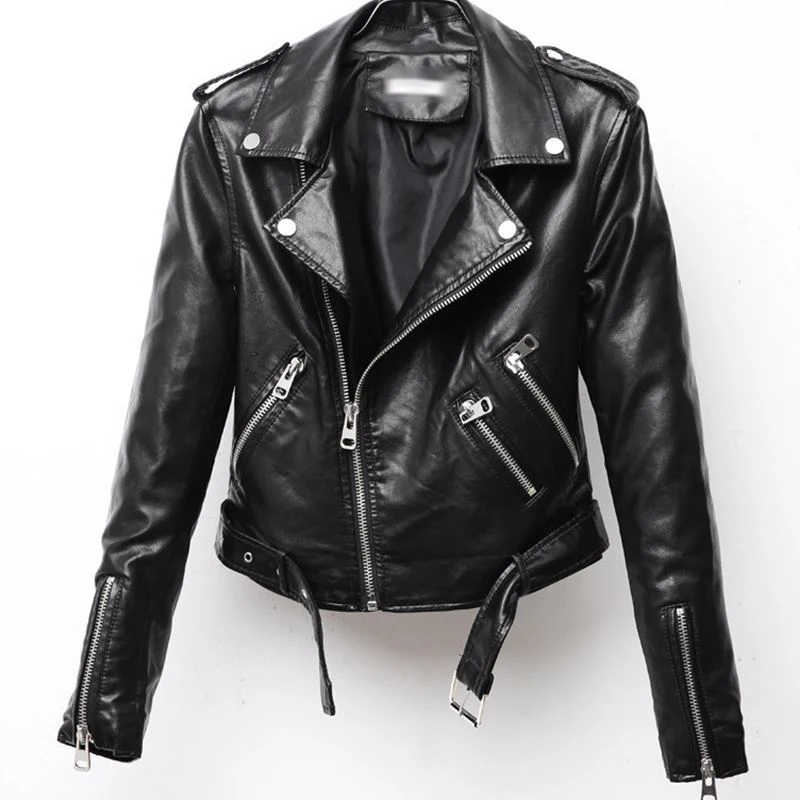 Женская короткая мотоциклетная куртка, асимметричная кожаная куртка...