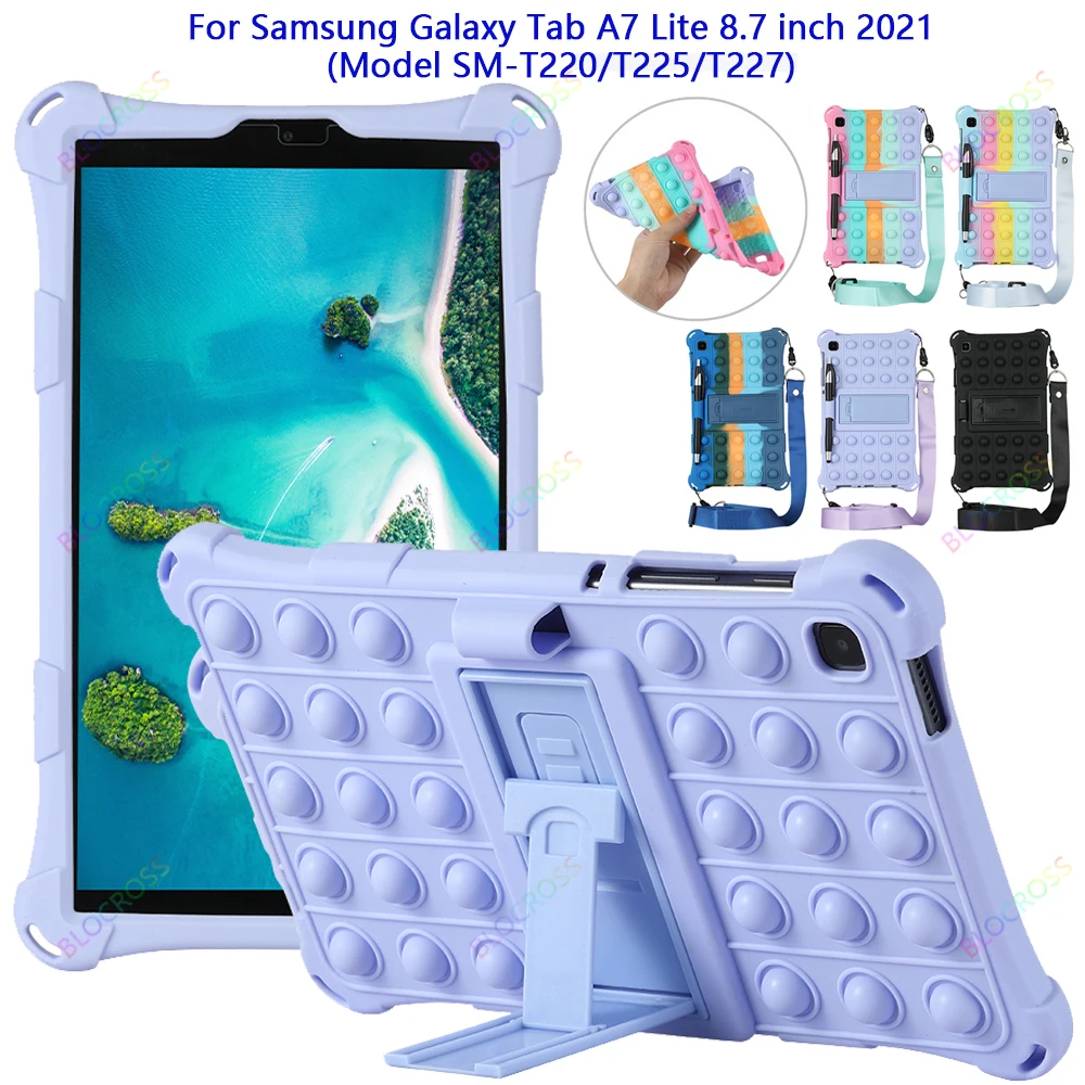 Чехол Pop Push It для Samsung Galaxy Tab A7 Lite 8,7 дюйма (2021) SM-T220T225T227, силиконовый, с наплечным ремнем и стилусом