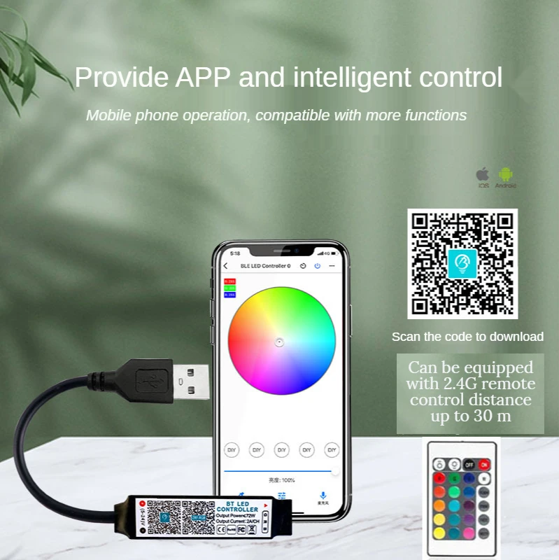 [Дистанционное управление]: метод подключения: общий анод (+)【Input】: 5 В[Выход]: 5V 6A[Размеры контроллера]: 1,2*5,2*0,5 см[Дистанционное управление]: управление мобильным приложением[Мощность]: Вход: USB 5V