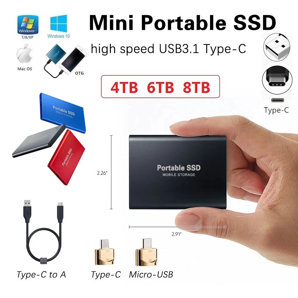 Mini SSD 8 ТБ 6 ТБ 4 ТБ 2 ТБ внешний жесткий диск для настольного н...