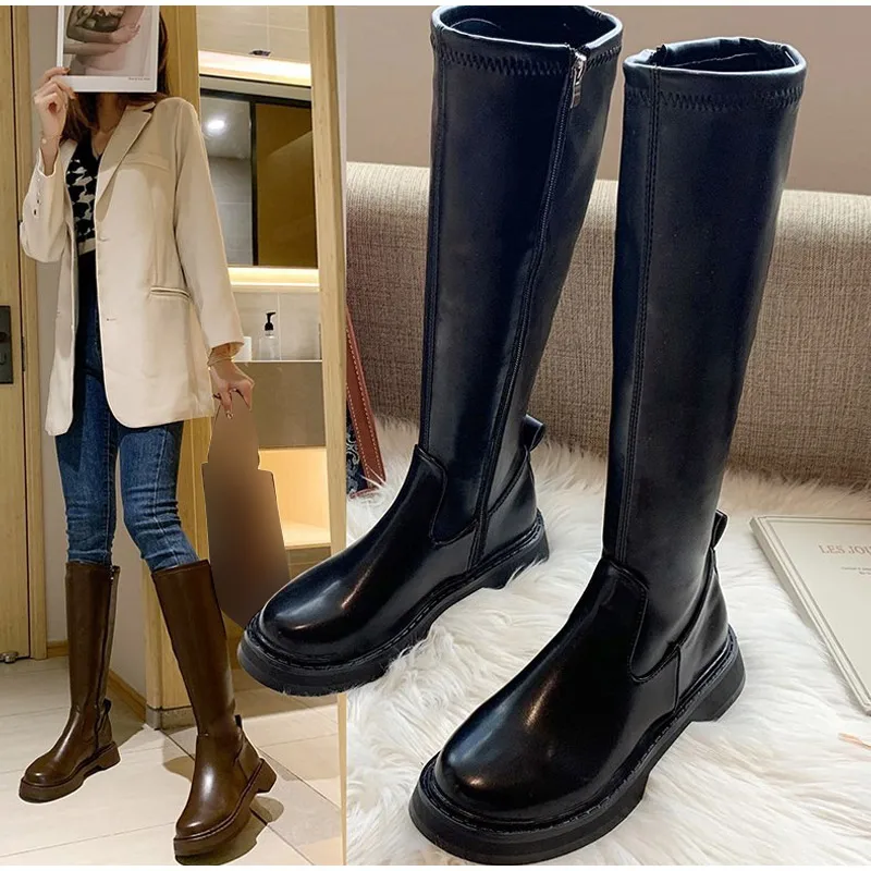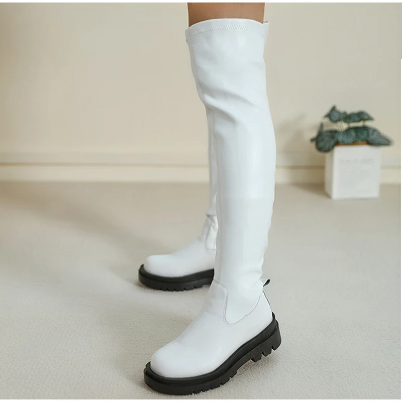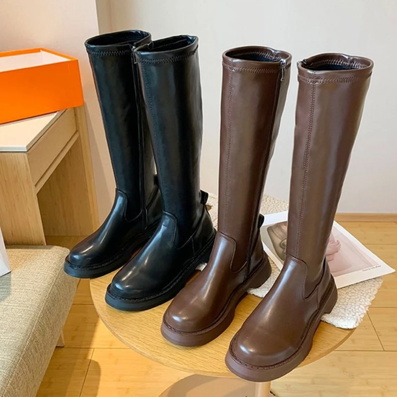 Женские сапоги выше колена, модные кожаные женские зимние длинные женские сапоги, модель 2021