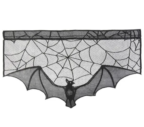 Декоративные занавески на Хэллоуин, летучая мышь, Черная кружевная паутина, праздничное полотенце, абажур, камин, тканевый Декор для жуткого фестиваля