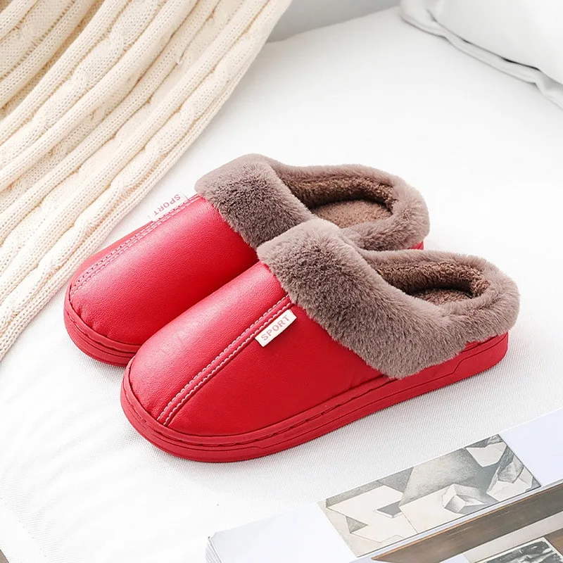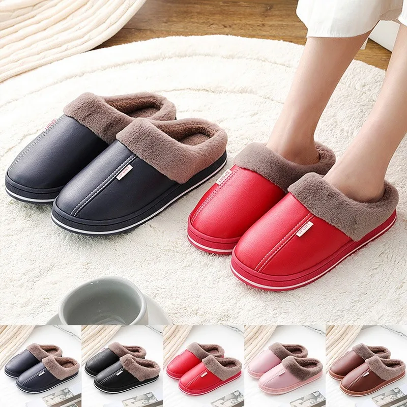 Водонепроницаемые тапочки из искусственной кожи, женские, мужские, зимние, плюшевые, теплые, домашняя обувь, мягкая, удобная женская обувь, шитые внутренние Тапочки