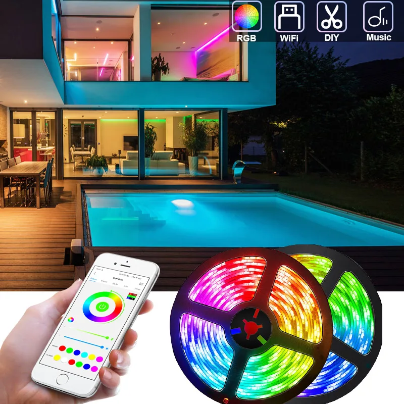 Светодиодные полосы Bluetooth WIFI контроллер гибкий RGB 5050 украшение подсветильник ка лампа светильник светящаяся строка для спальни