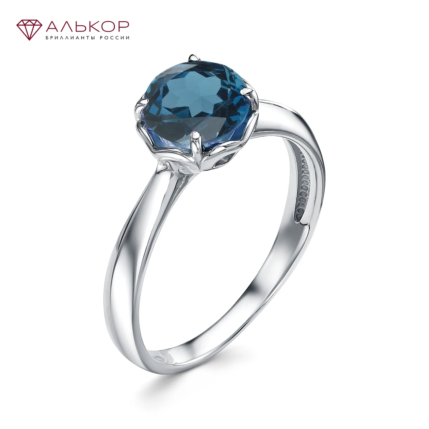 Ювелирное кольцо из родированного серебра c юв.стеклом топаз лондон АЛЬКОР. Бесплатная доставка с ювелирной фабрики в России. Мы покрываем серебро гипоаллергенным слоем родия толщиной 0,4 мкм, чтобы драгоценный металл получил благородный платиновый блеск и не потемнел со временем. Ширина изделия: 8,2 мм.