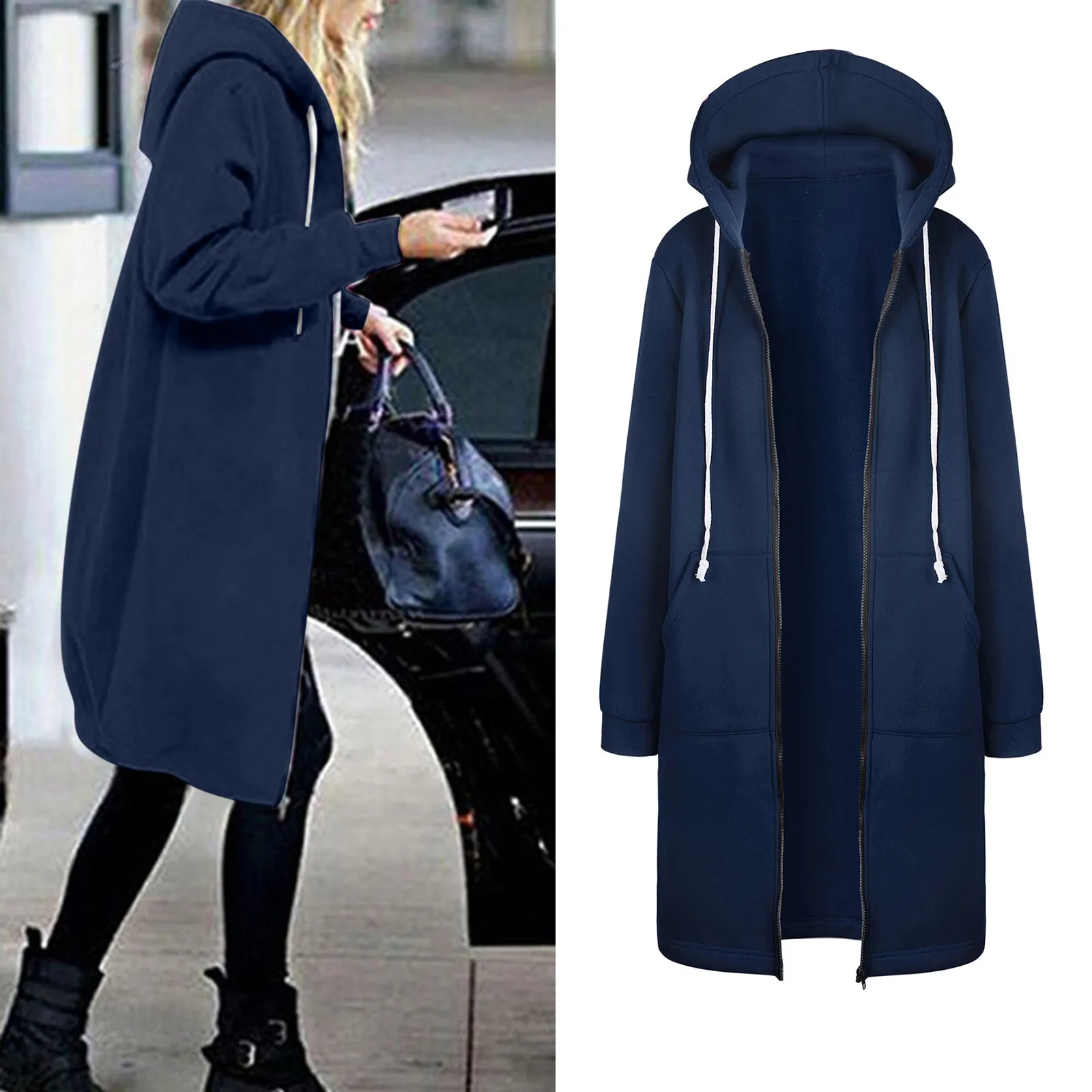 Осенние толстовки на молнии, пальто, длинные зимние толстовки, Женс...