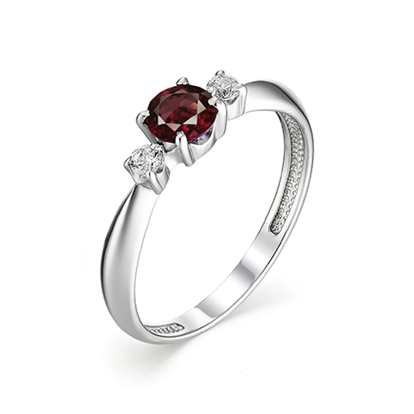 Ювелирное кольцо из родированного серебра c гранатом АЛЬКОР. Бесплатная доставка с ювелирной фабрики в России. Мы покрываем серебро гипоаллергенным слоем родия толщиной 0,4 мкм, чтобы драгоценный металл получил благородный платиновый блеск и не потемнел со временем. Ширина изделия: 4,8 мм.