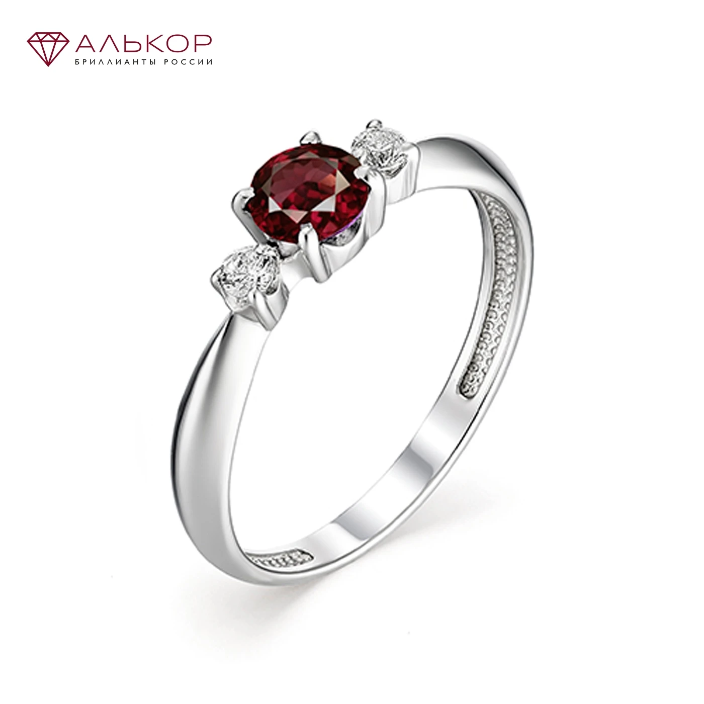 Кольцо тренд 2021 из родированного серебра c гранатом АЛЬКОР. Бесплатная доставка с ювелирной фабрики в России