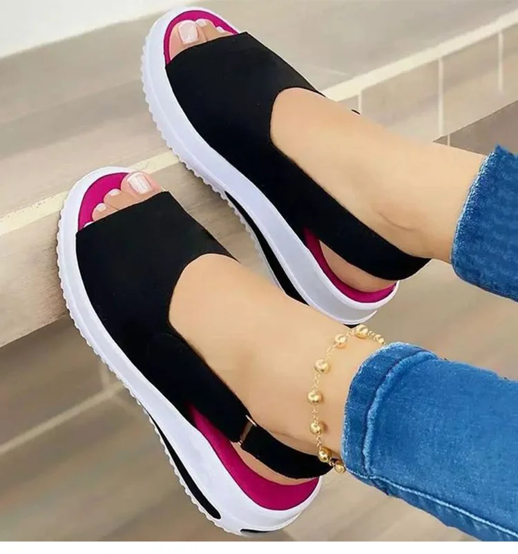 Женские босоножки на танкетке, повседневные туфли с открытым верхом, мягкие сандалии на платформе, лето 2021