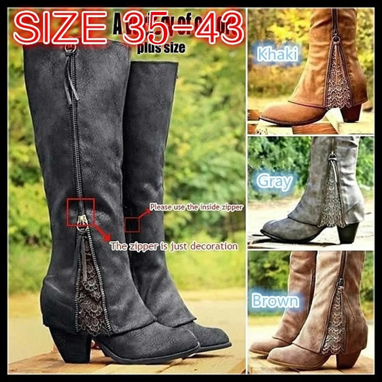 Женские ботинки с кружевом и бахромой, длинные ботинки-трубки на толстом каблуке, модные женские ковбойские ботинки с бахромой, женские ботинки на весну и осень