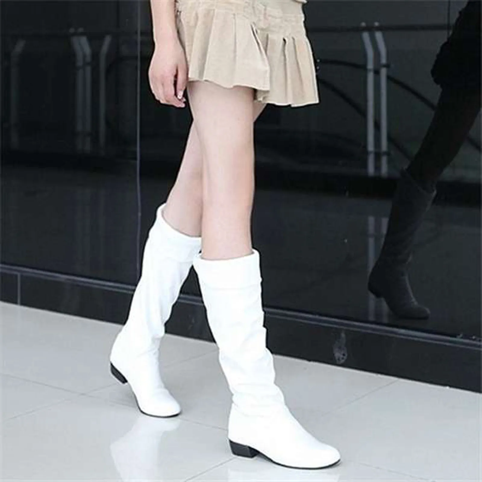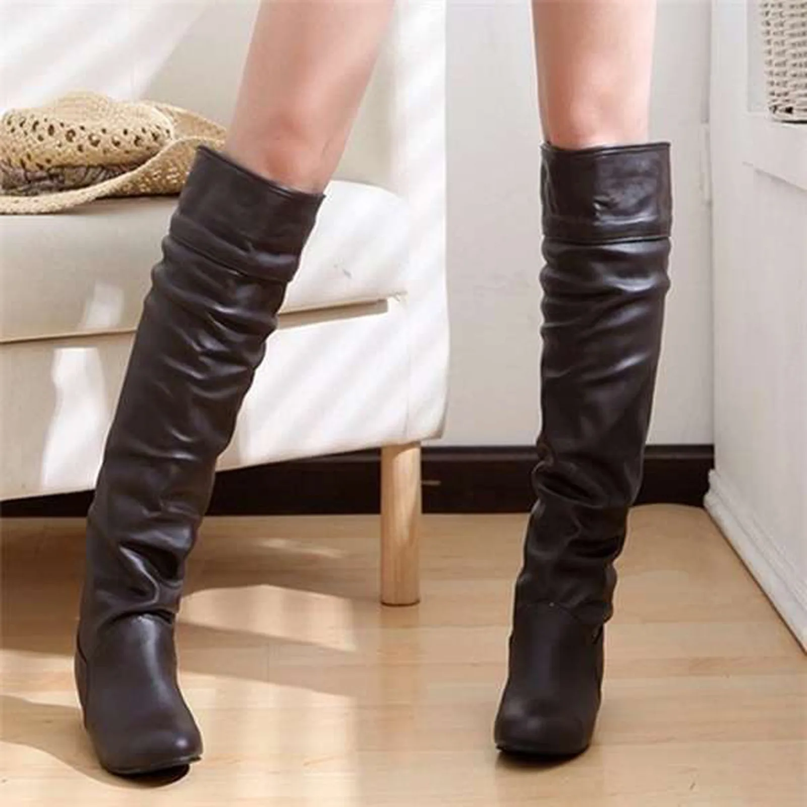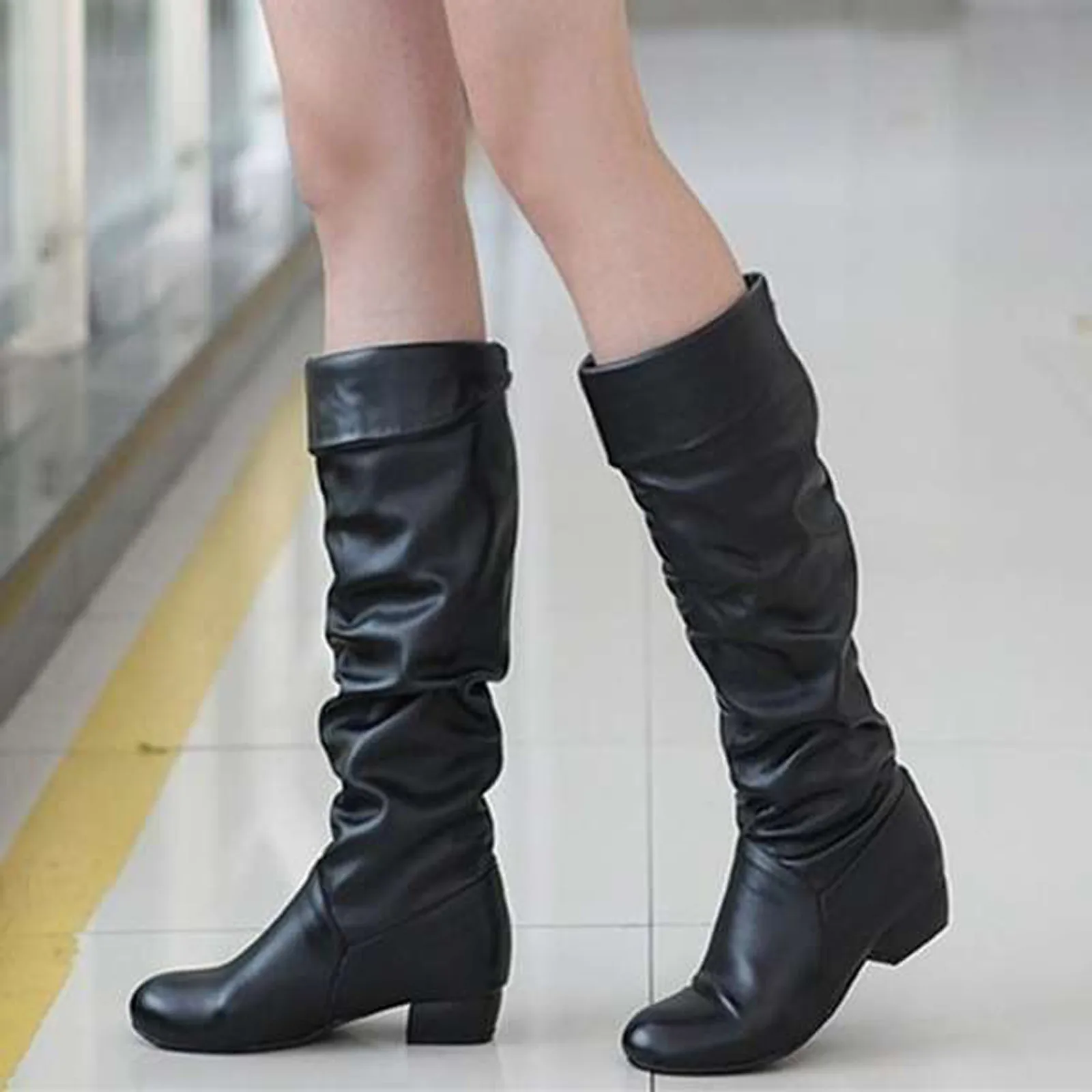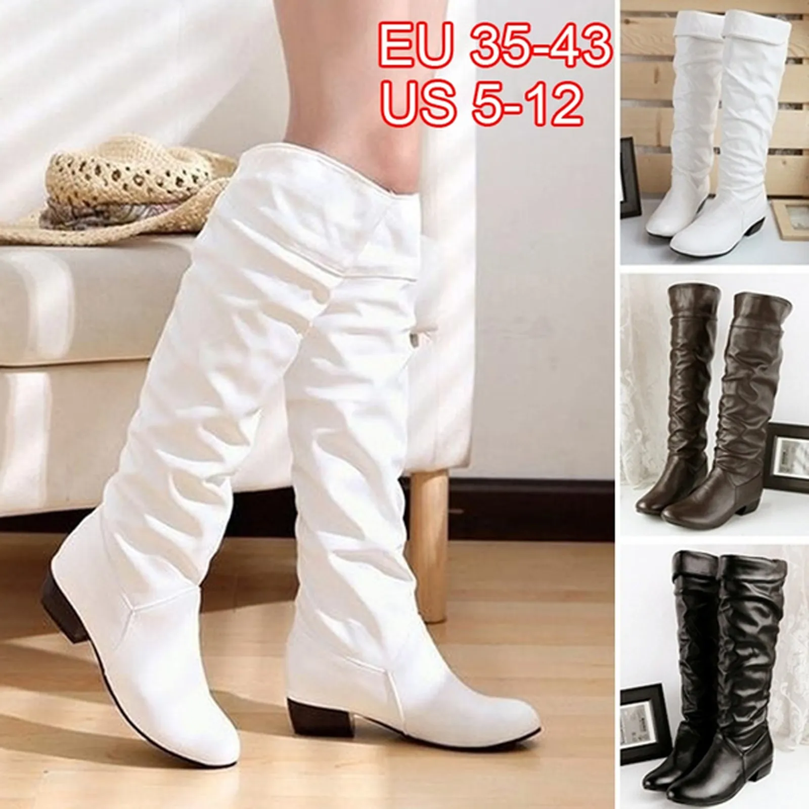 Женские зимние модные сапоги до колена; Высокие сапоги-трубы на плоской подошве; Сапоги для верховой езды