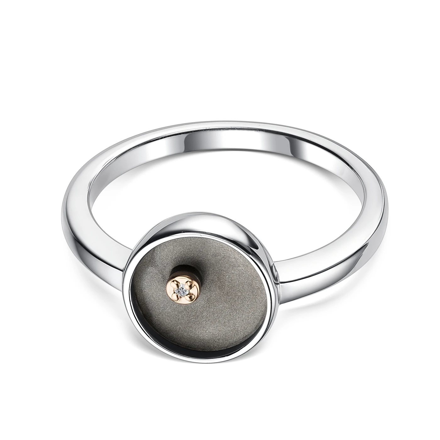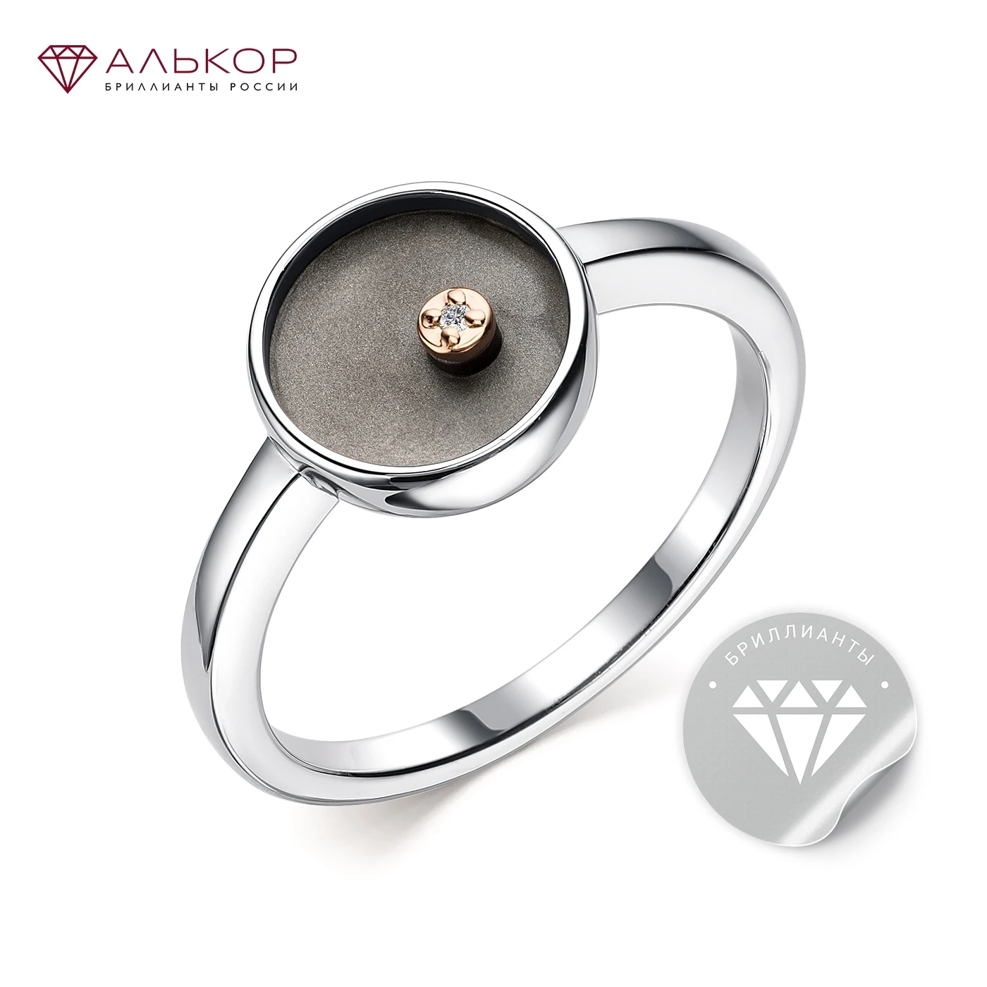 Кольцо тренд 2021 из родированного серебра и золота c бриллиантом АЛЬКОР. Бесплатная доставка с ювелирной фабрики в России