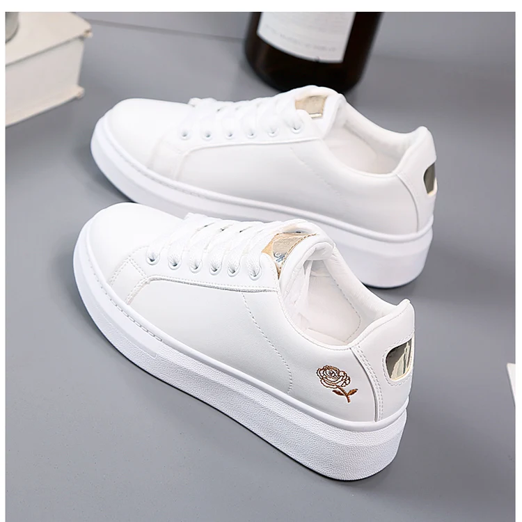 Женские кроссовки с вышивкой, белые дышащие кроссовки на шнуровке с цветами, повседневная обувь на весну 2021