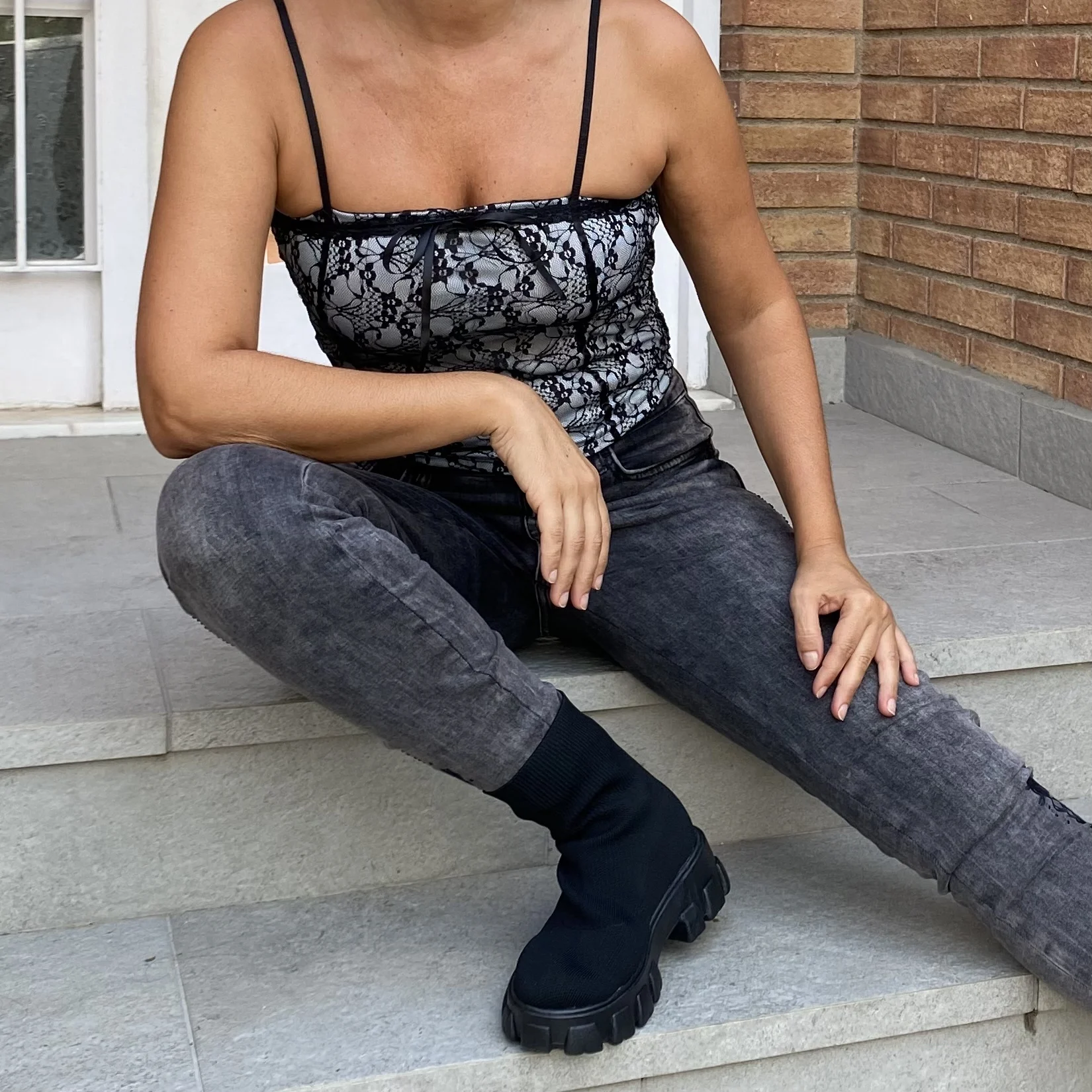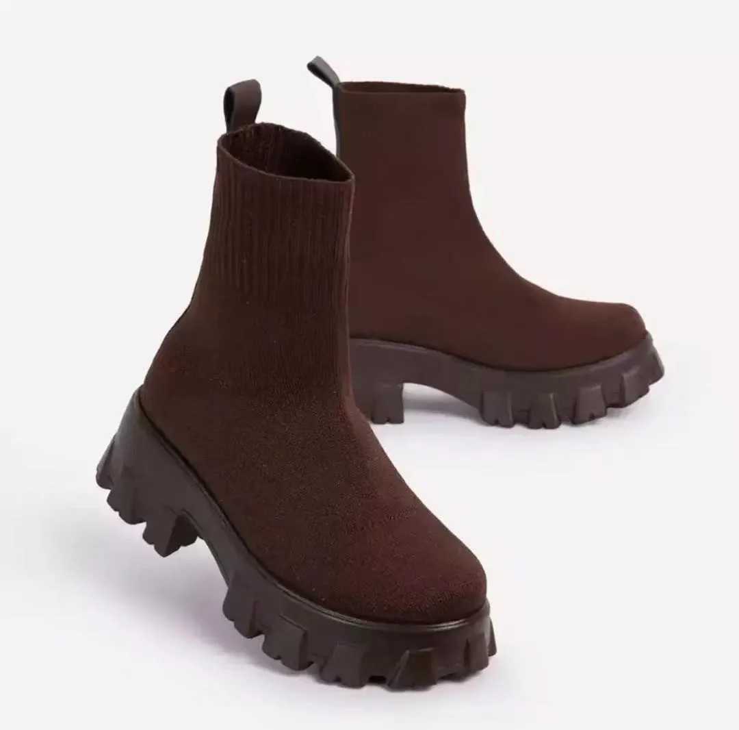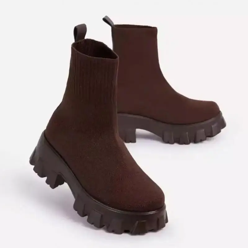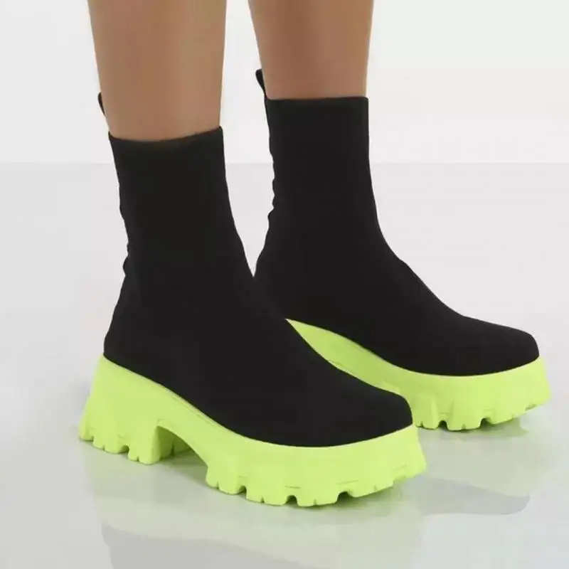 Женские ботинки без шнуровки на платформе в западном стиле трикотажные женские осенние носки 2022 Модные женские ботинки Ytmtloy женские эластичные
