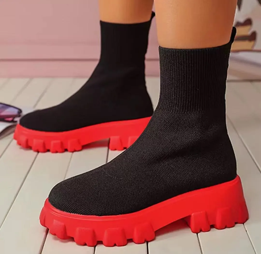 Женские вязаные Ботинки Челси на толстой подошве, красного цвета