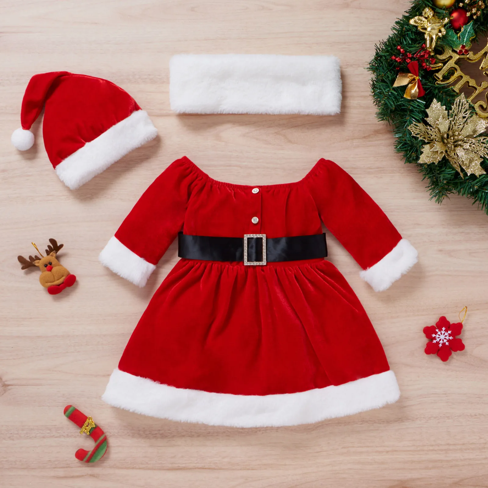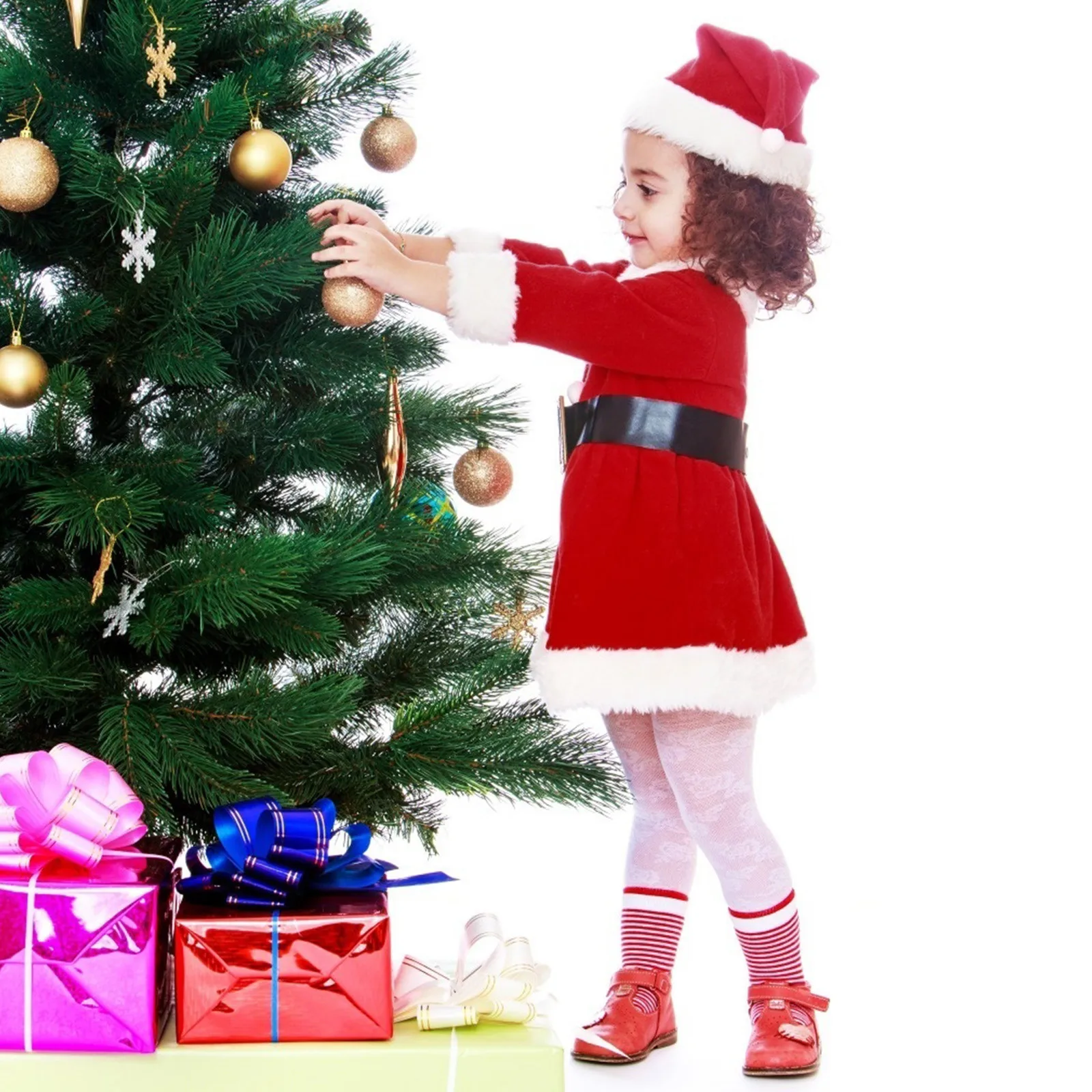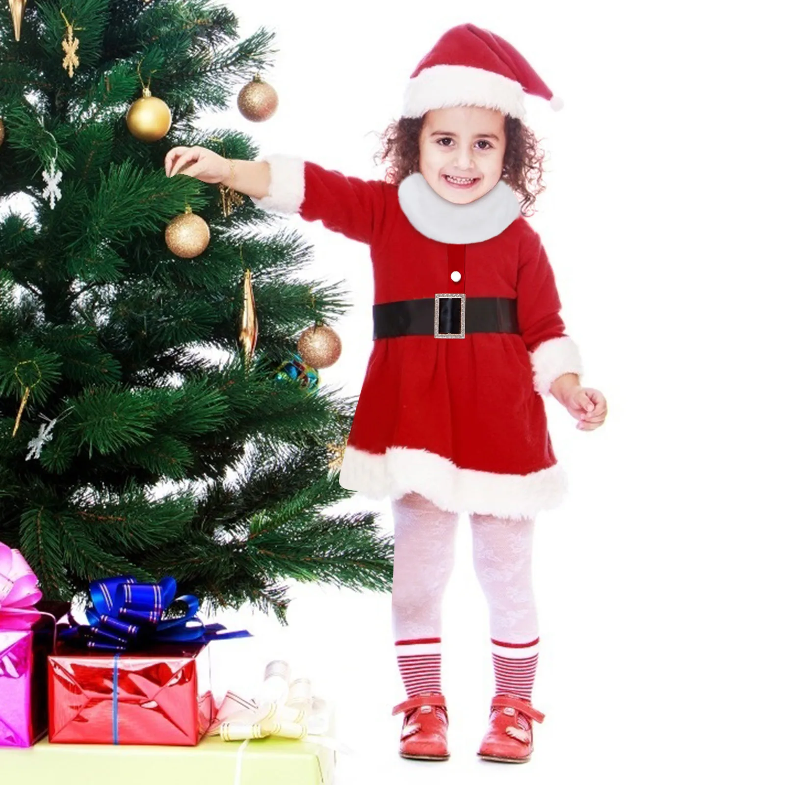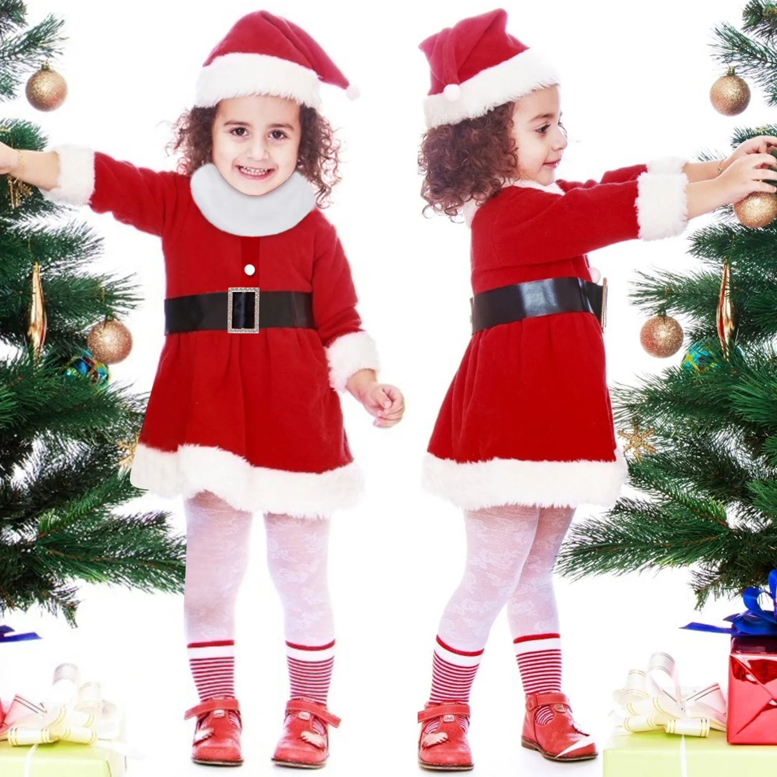 Новое зимнее рождественское платье для маленьких девочек и шапка Санта Клауса, детская одежда на Рождество, милое рождественское платье для девочек, От 1 до 4 лет