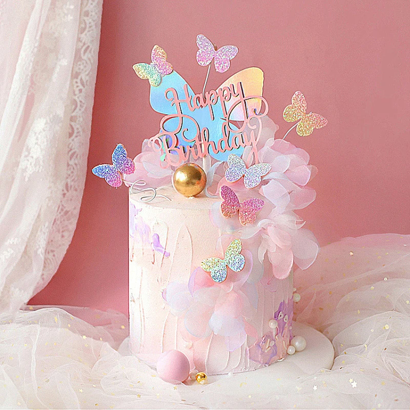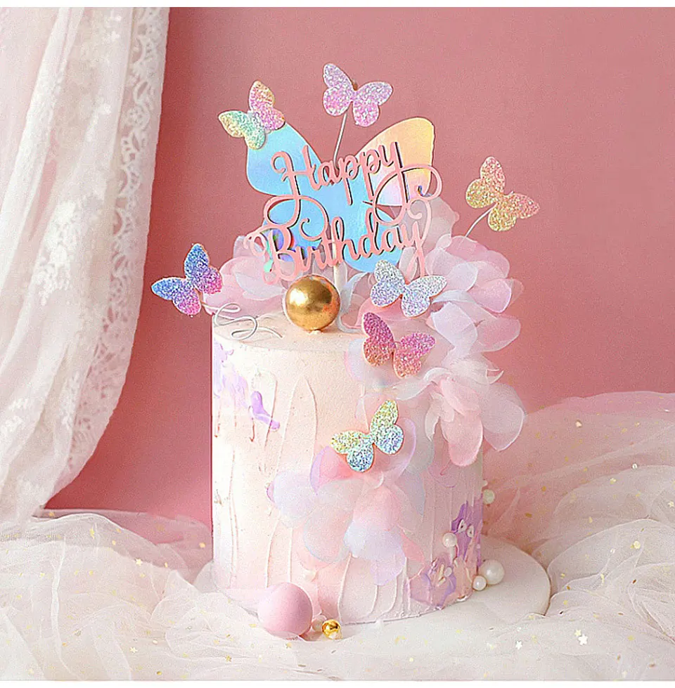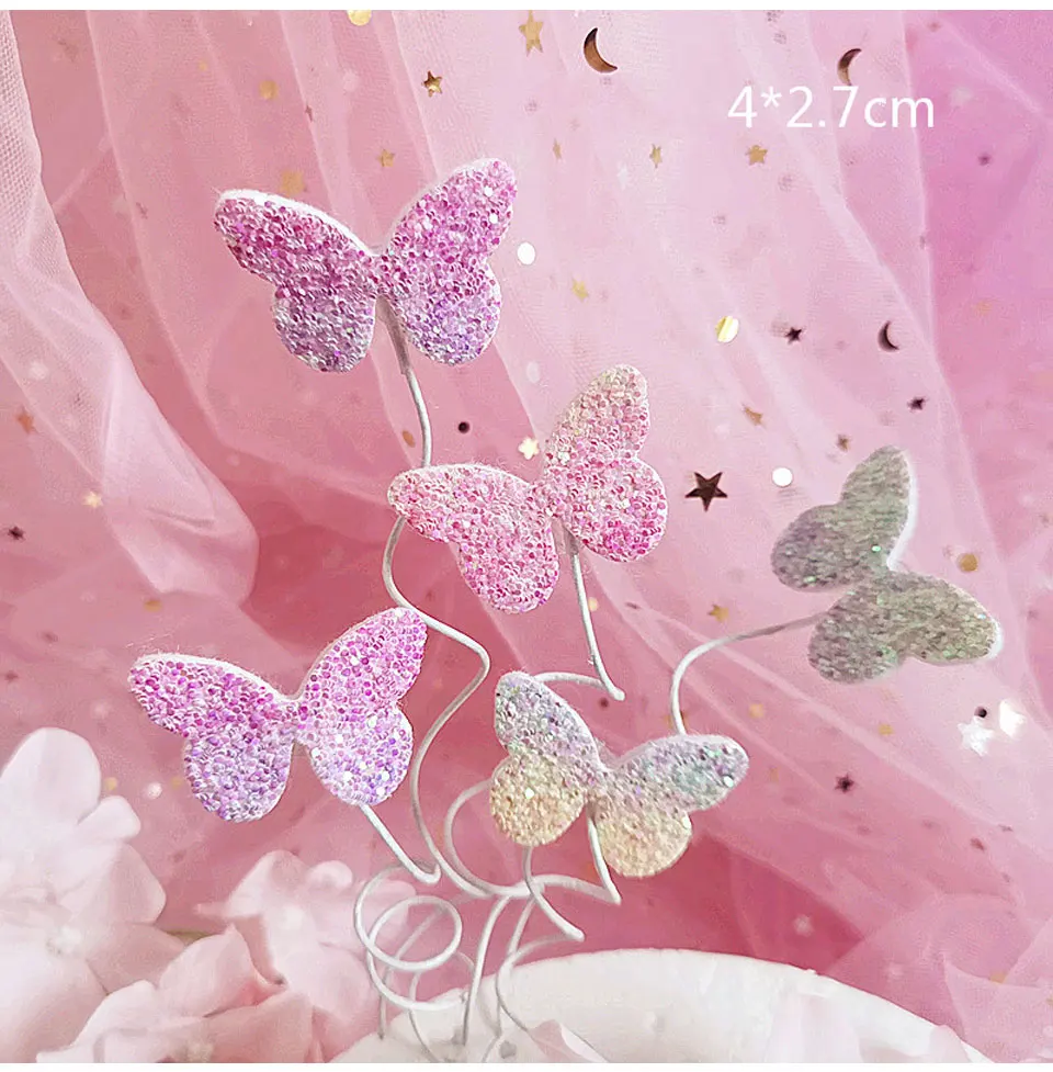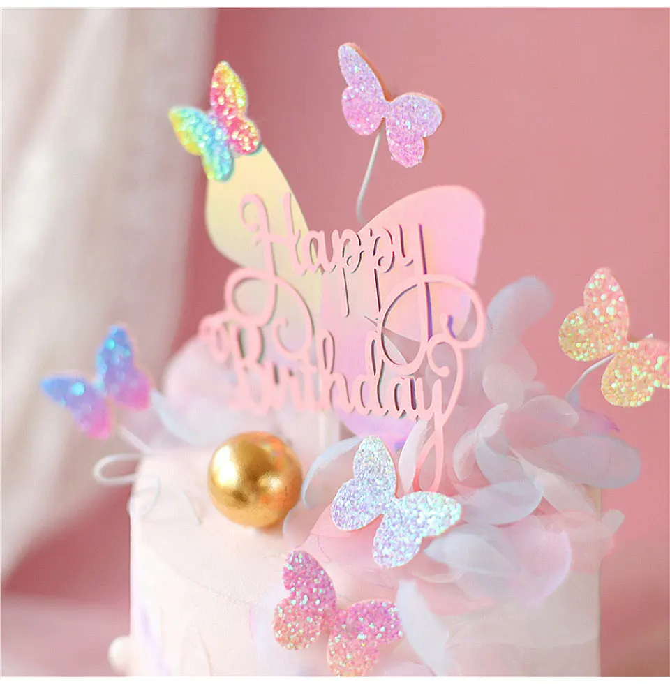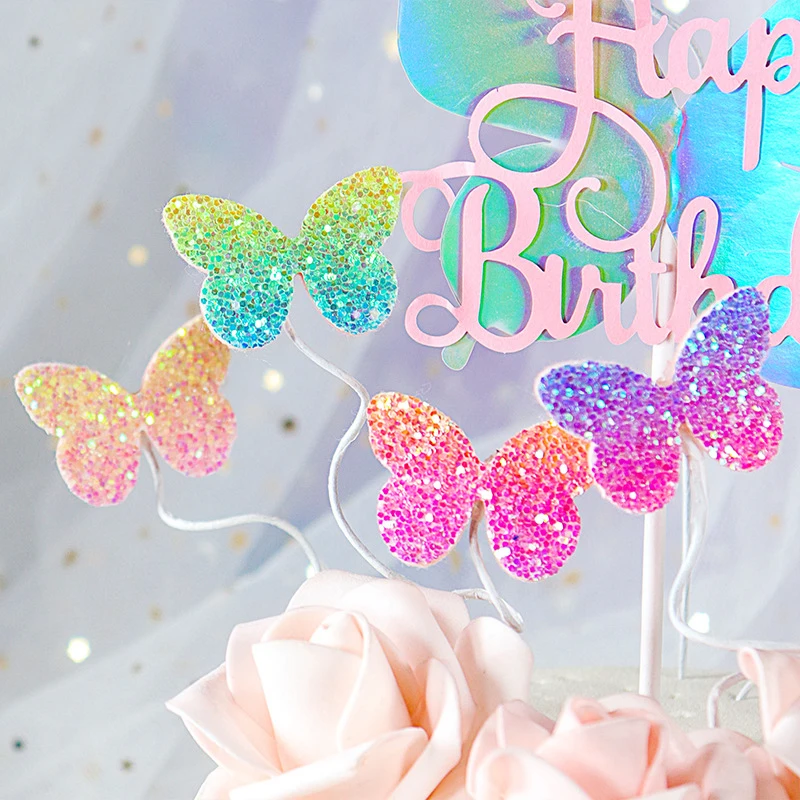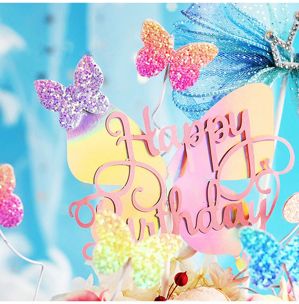 Блестящие лазерные топперы для торта в виде бабочки, счастливая фотография, расписанные вручную, украшения для торта на свадьбу, день рождения, выпечку
