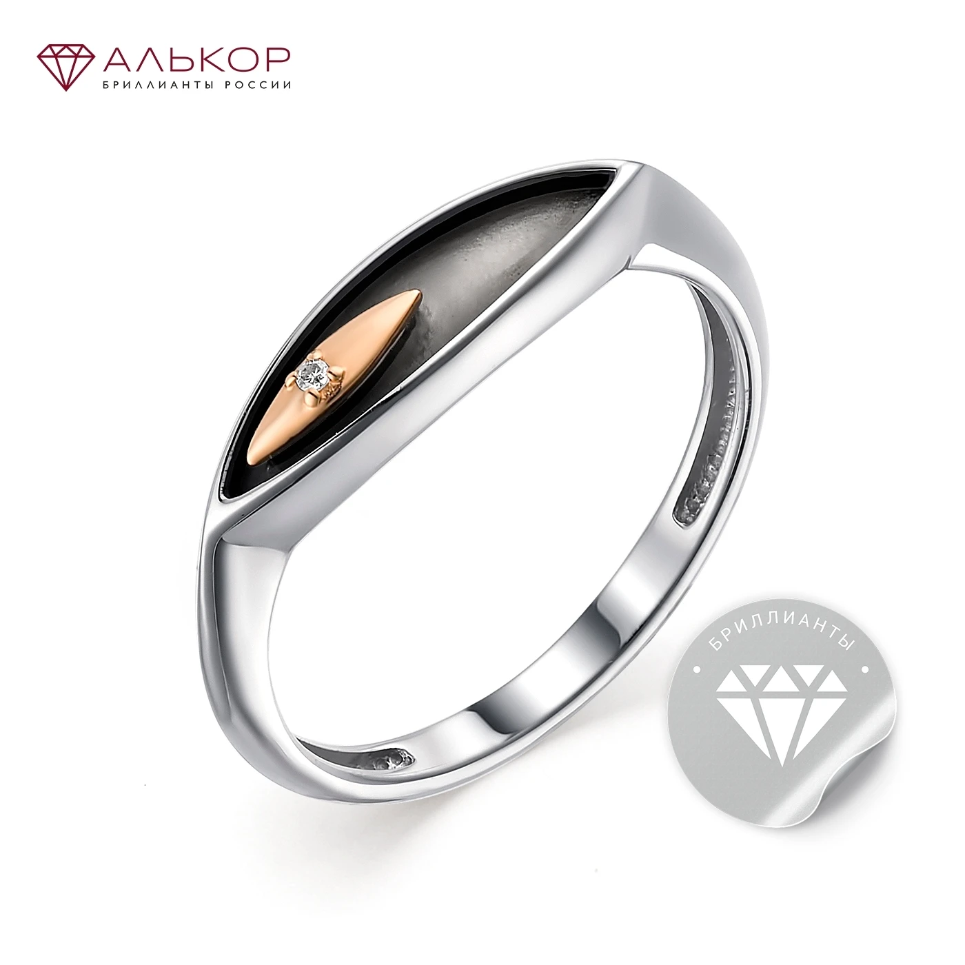 Кольцо тренд 2021 из родированного серебра и золота c бриллиантом АЛЬКОР. Бесплатная доставка с ювелирной фабрики в России