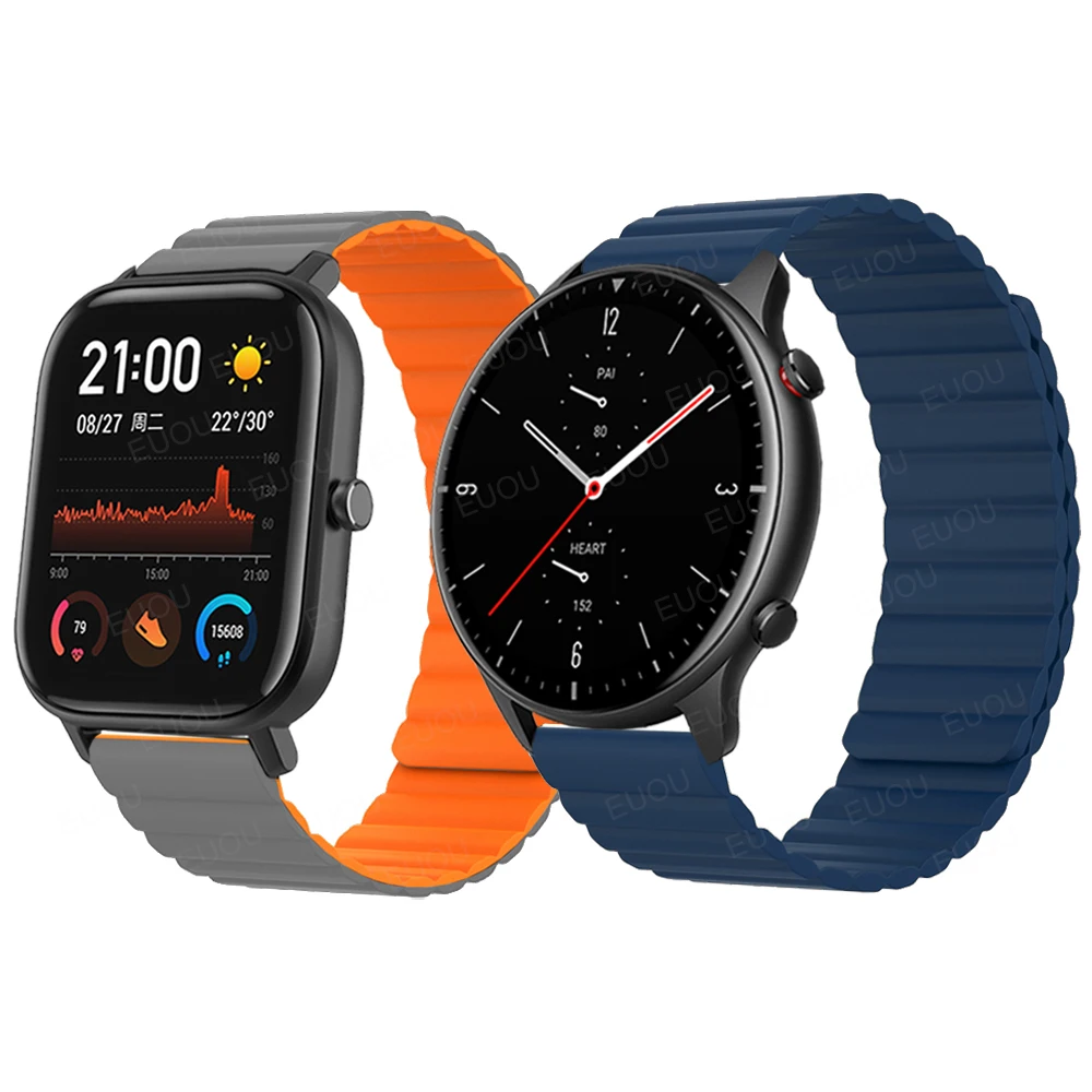 Ремешок силиконовый для Huami Amazfit GTR 2 2eGTS 2 mini Bip U S Stratos 3GTR, магнитный браслет для наручных часов, 47 мм 42 мм