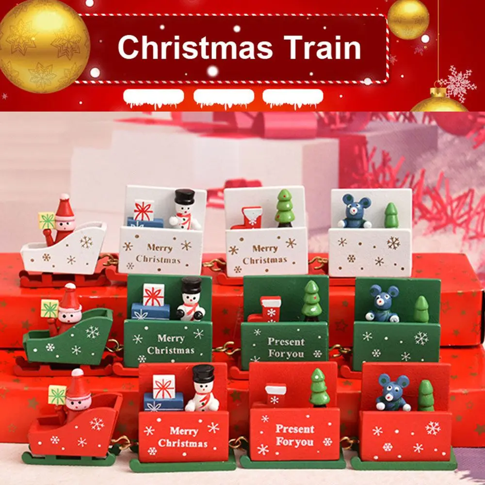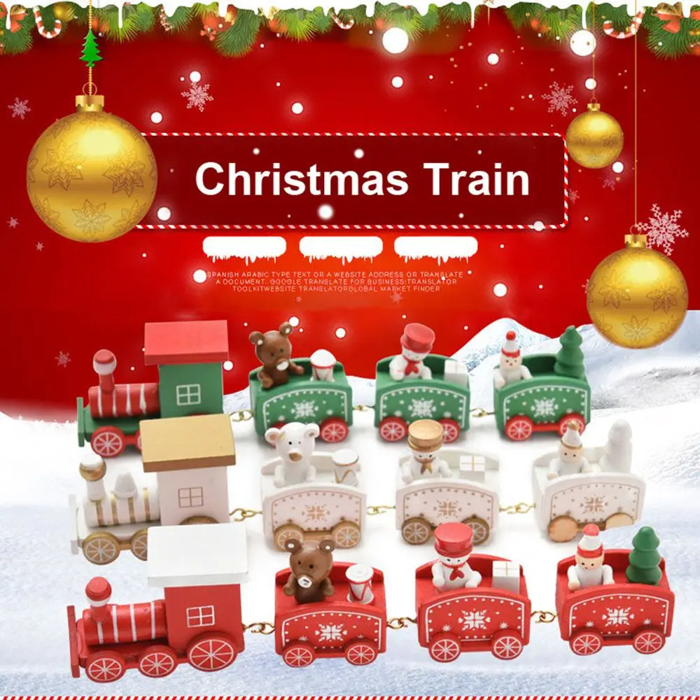 Детские игрушки для детей, окрашенный процесс, новогодний подарок, Рождественское украшение, изображение Санта, деревянный материал, Рождественское украшение поезда