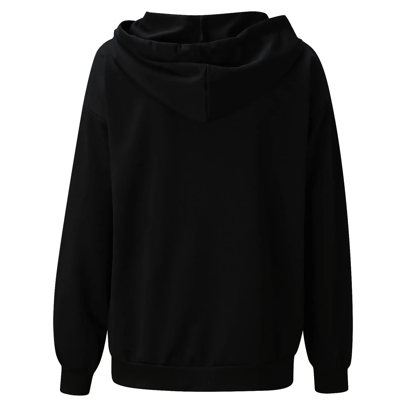 Винтажная черная модная толстовка на молнии с карманами, зимняя куртка, одежда, толстовки, Женский пуловер большого размера с длинным рукавом # Z
