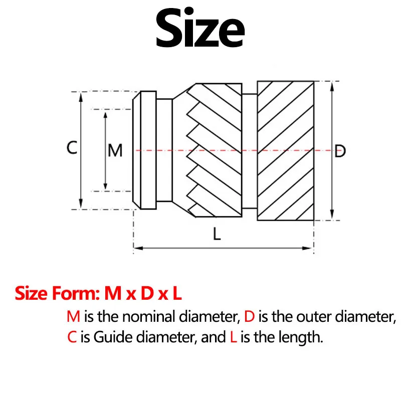 Латунная Встраиваемая накатанная резьба, нагревательный набор, вставные гайки, набор в ассортименте для 3D печати, Пластиковая форма M2 M2.5 M3 M4 M5 M6