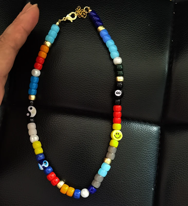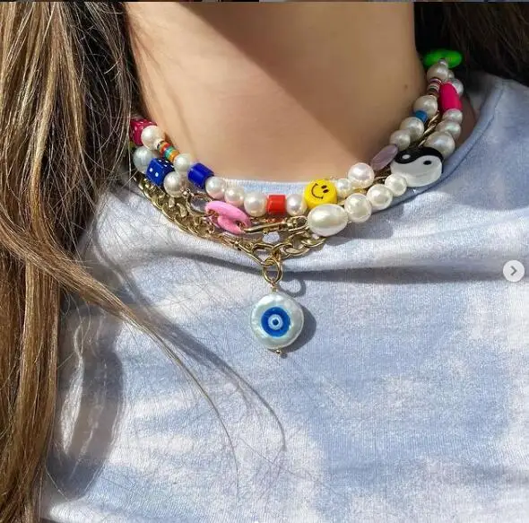 2021 натуральное пресноводное ожерелье с красочным узором от сглаза...