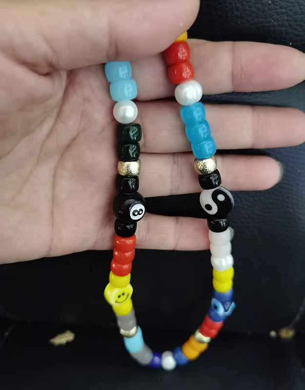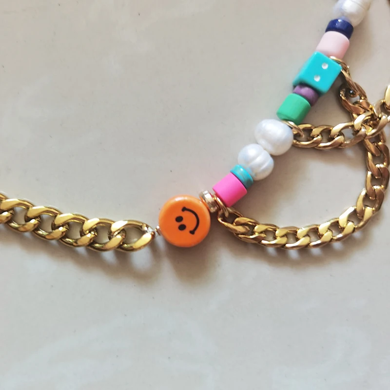 Креативный Инь Ян Шарм бусы барокко пресноводный жемчуг сплетни желтый оранжевый смайлик синяя цепочка с кубиком цепочка из нержавеющей стали