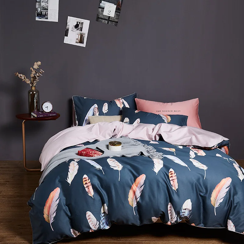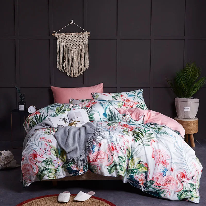 Комплект постельного белья из египетского хлопка с растительным принтом, 4 шт., шелковистый, мягкий пододеяльник, размер Queen США 200x230 см, постельное белье XF1032-2