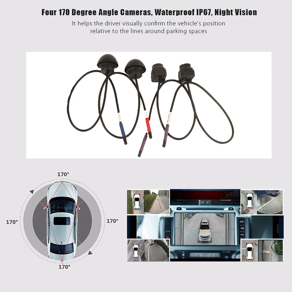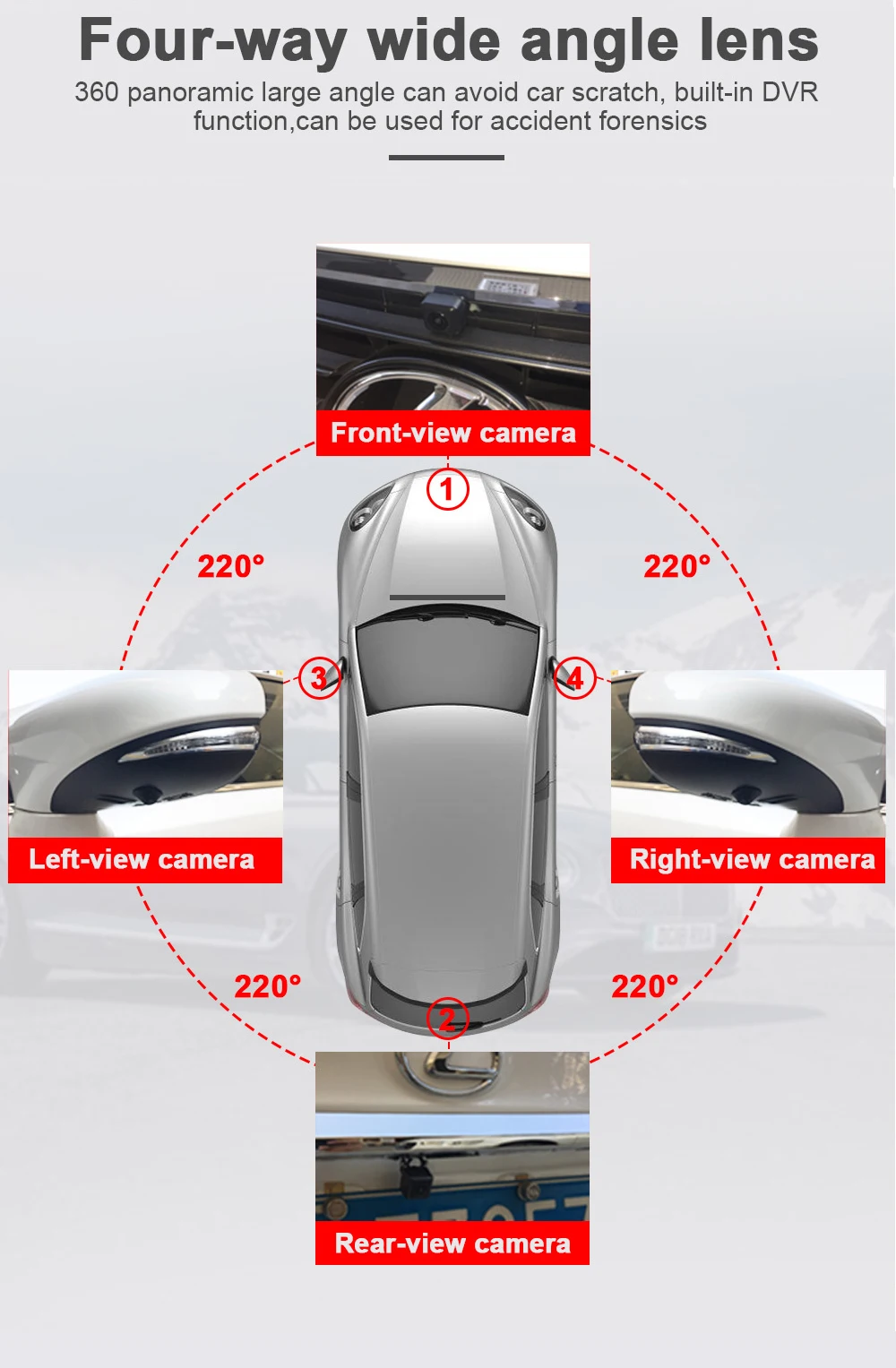 Эта Автомобильная камера с углом обзора 360 градусов-это технология поддержки, которая помогает водителям легко парковаться, лучше понимая окружающую среду автомобиля через виртуальный птичий глаз сверху транспортного средства. Это помогает водителю визуально подтвердить положение транспортного средства относительно линий вокруг парковочных мест и прилегающих объектов, что позволяет водителю маневрировать в парковочных местах с большей легкостью. Система может отображать вид «птичий глаз», «передний» и «задний» вид, что позволяет одновременно проверять окружение автомобиля на 360 градусов как спереди, так и сзади.