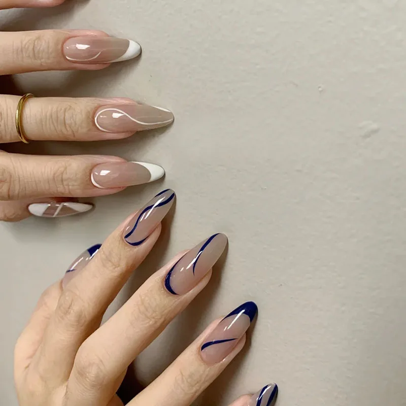 24 шт миндаля форма накладные ногти с цветной волной кривой дизайн ...