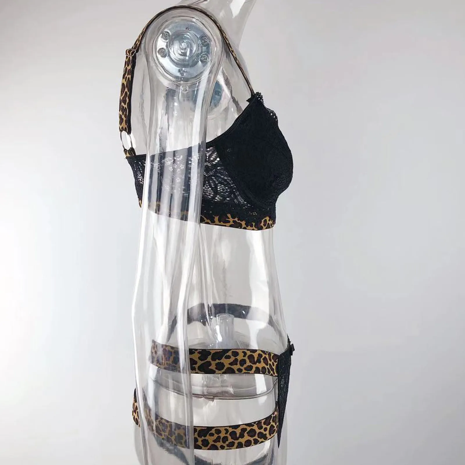 Женское сексуальное соблазнительное нижнее белье с леопардовым принтом, кружевное нижнее белье