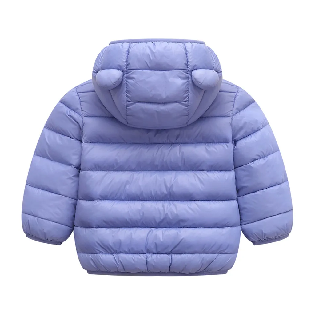Детские зимние пальто для мальчиков и девочек, куртка на молнии, толстая верхняя одежда с капюшоном и ушками