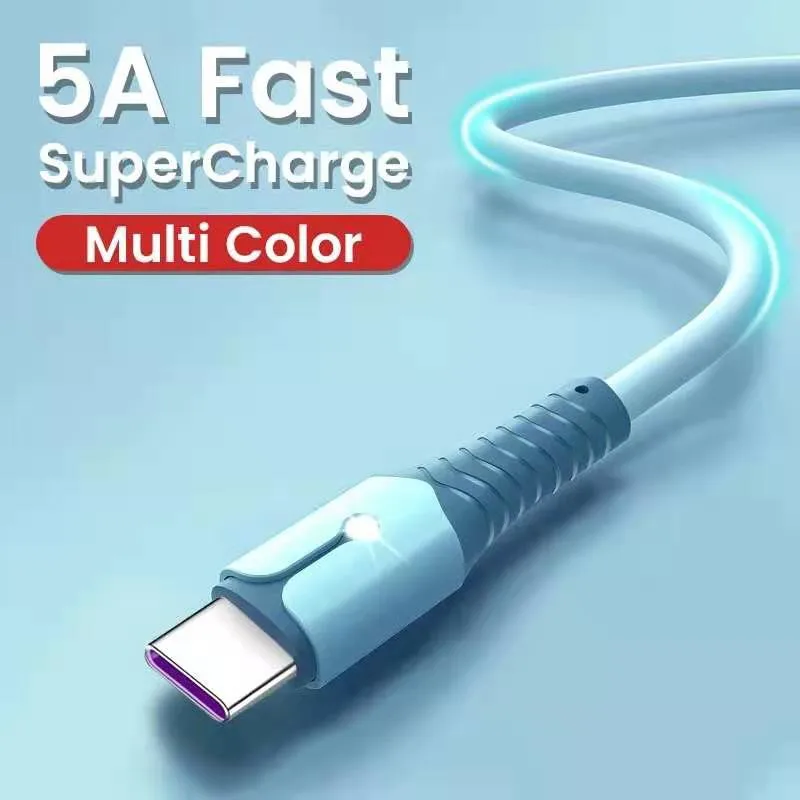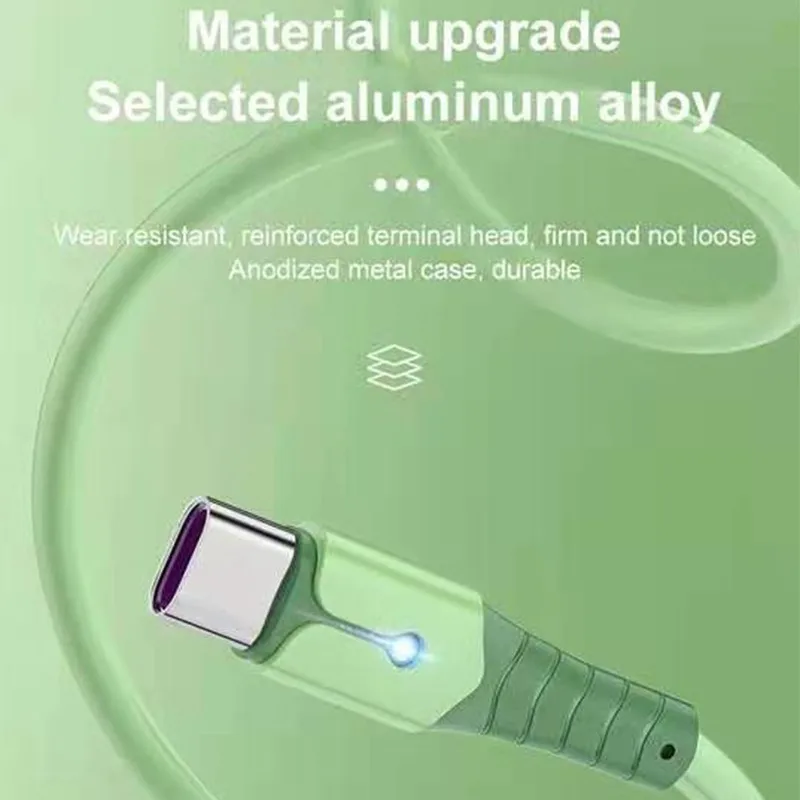 Жидкий Силикон 5A, Сверхбыстрая зарядка, кабель со светодиодной под...