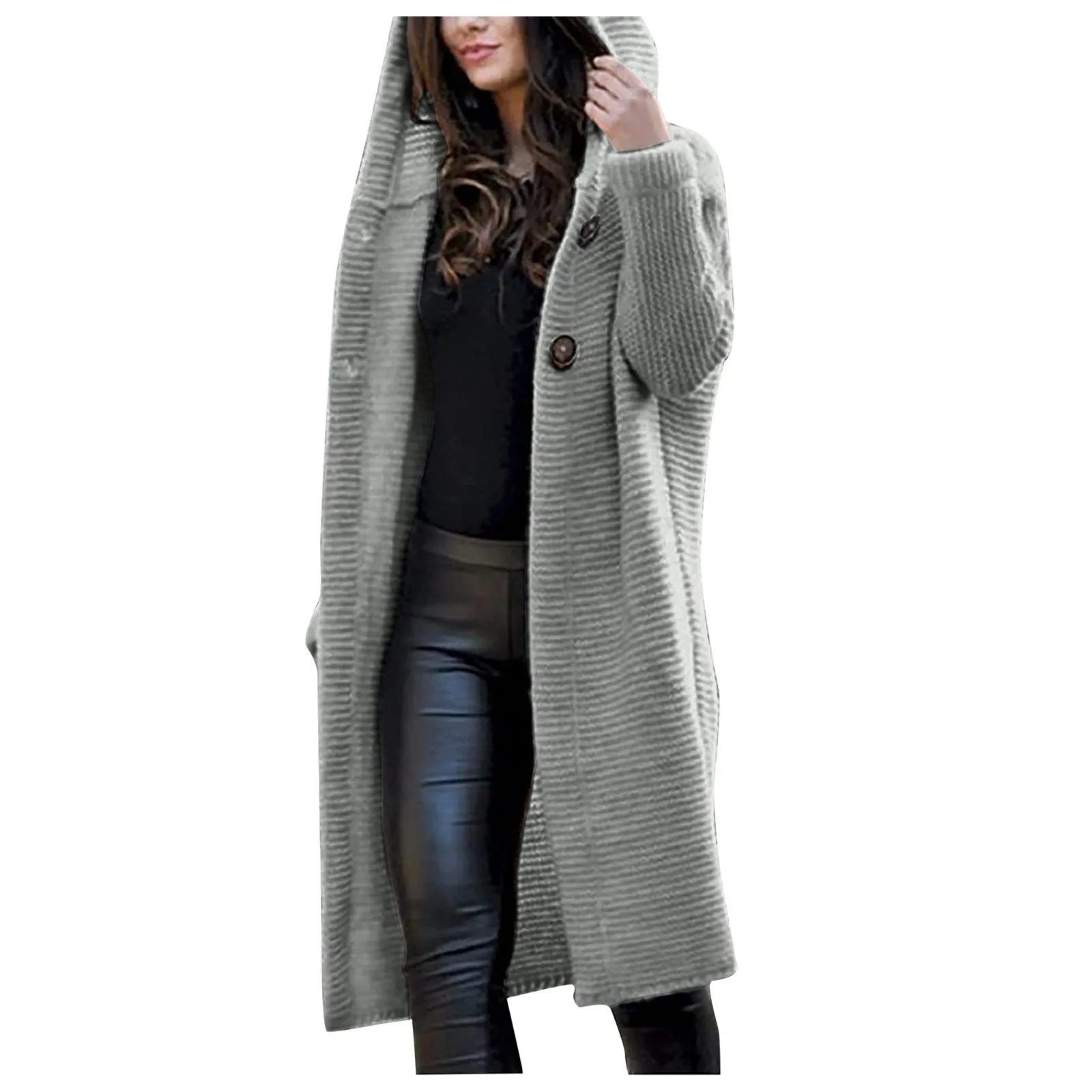 Осенне-зимние вязаные кардиганы с V-образным вырезом, Женские однотонные свободные свитера, Женские повседневные кардиганы, мягкая трикотажная одежда с капюшоном # T2G